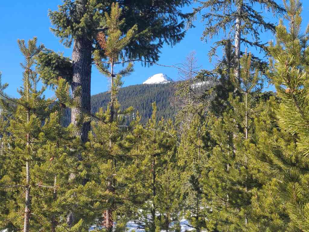 The view back at our route along the northeast ridge. There was barely any elevation loss, so the entire trip back was all downhill and very quick. In fact, given the terrain, a pair of skis would’ve made for a VERY quick and VERY enjoyable egress off the mountain! The logging roads and trails would be fantastic runs. Why do I only think of these things afterwards? 😂