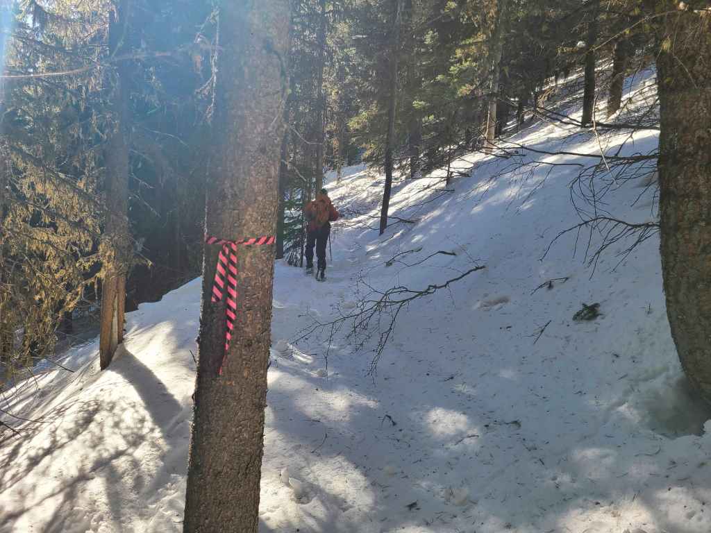 When the snow became soft, we headed into the trees.