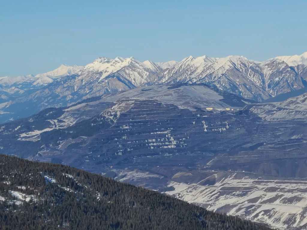 A better look at the Teck mine on Natal Peak (foreground). In the distance are Sheep Mountain (right), Mount Salter (right of centre), and Mount Lyne (left). So many mountains to explore! 😁
