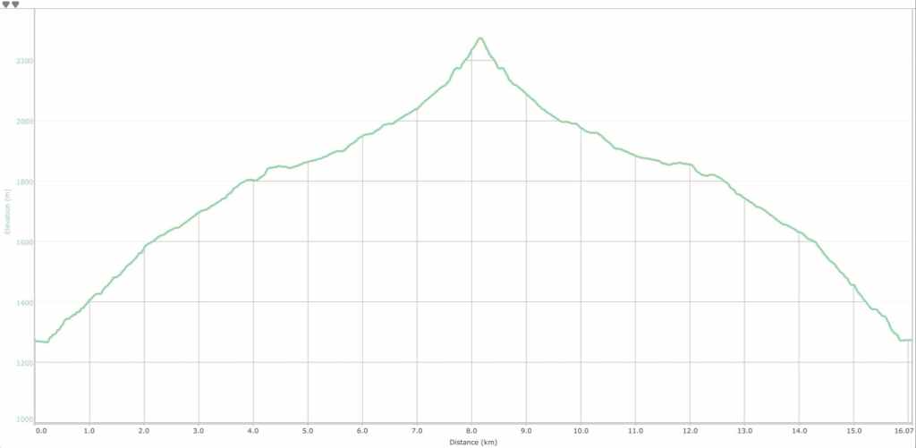 Our total distance travelled was 16 km with a total elevation gain of 1043 m. Our total roundtrip time came in at 9 hours and 6 minutes.