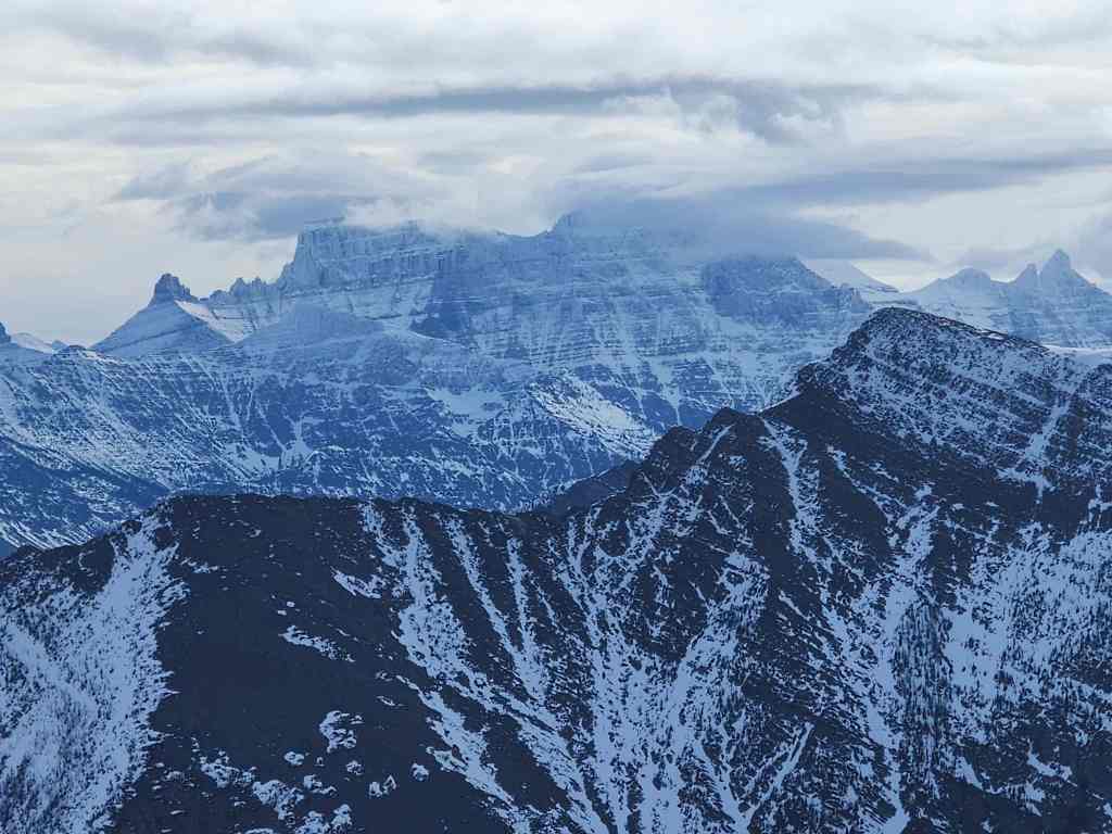 Zeroing in on Istiikoiistakoo (Sofa Mountain) and Saakiihmabii (Vimy Peak).
