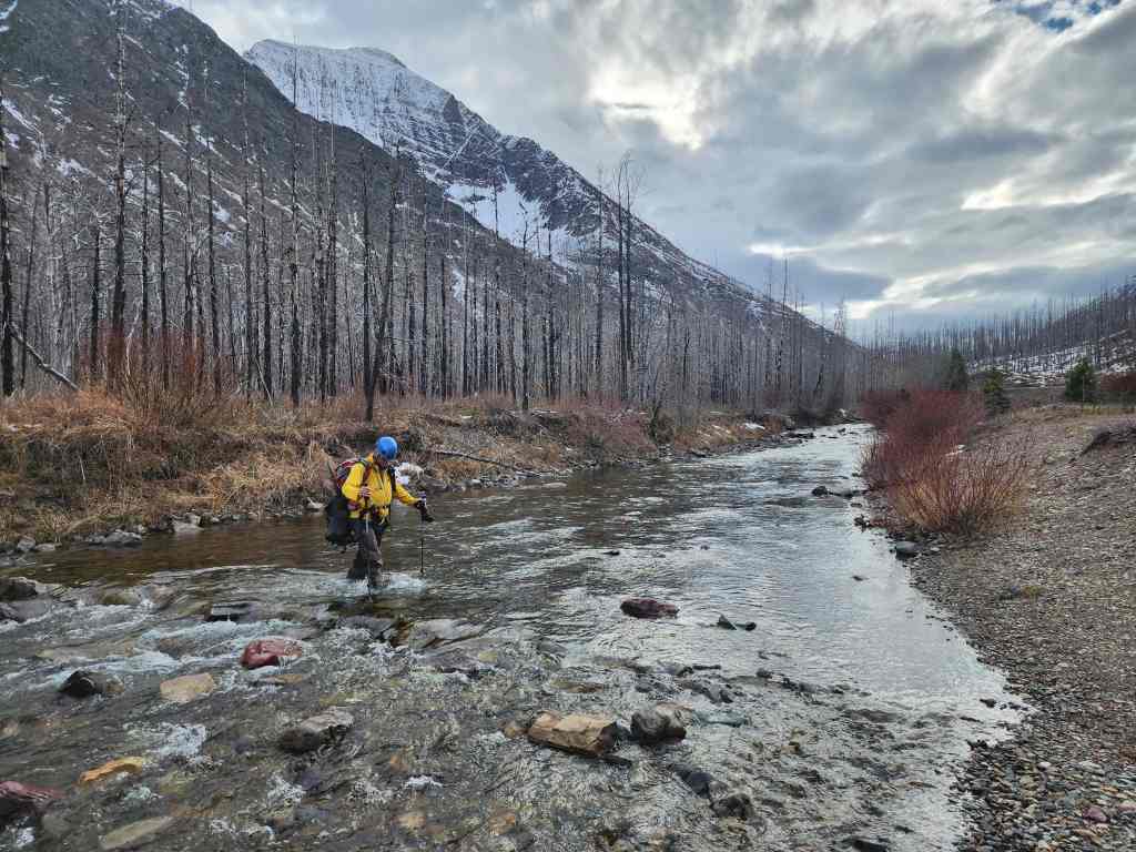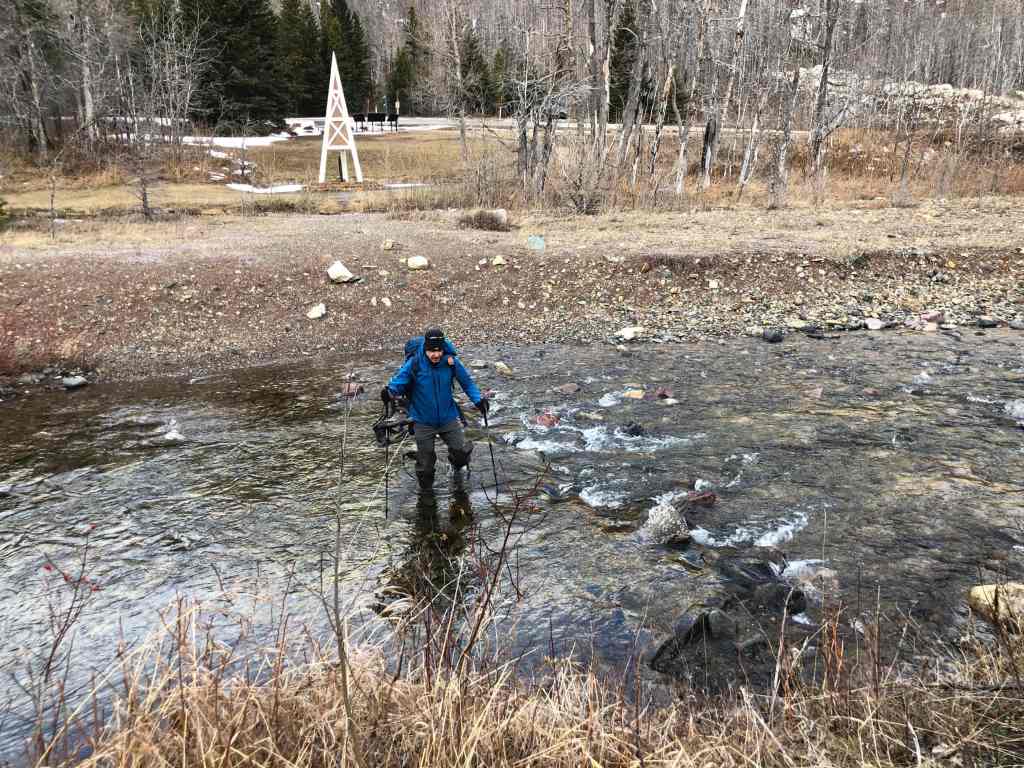 Crossing Cameron Creek… A big thanks to Mark Nugara for the hip waders. They may have been two sizes too small, but they did the trick. 🙂 (Photo by Andrew Nugara)