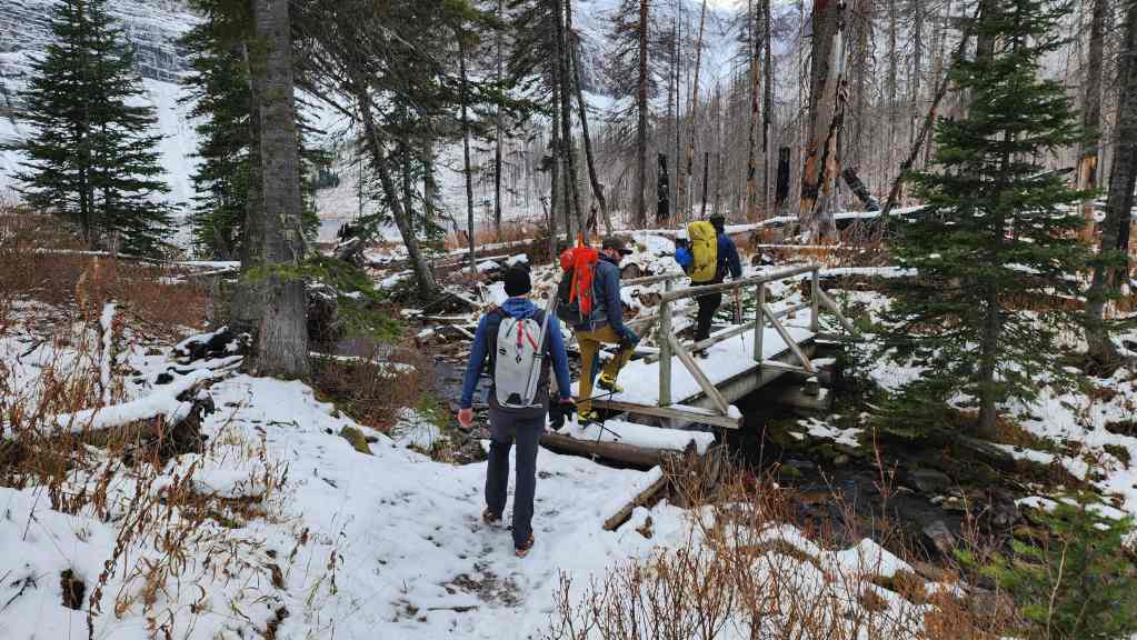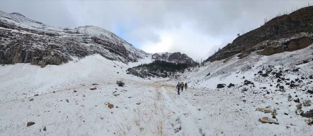 Leaving Wall Lake and heading up Bennett Pass trail. For reference, it would take us 1 hour and 15 minutes to cover the ~2.7 km (505 m elevation gain) distance to Bennett Pass.
