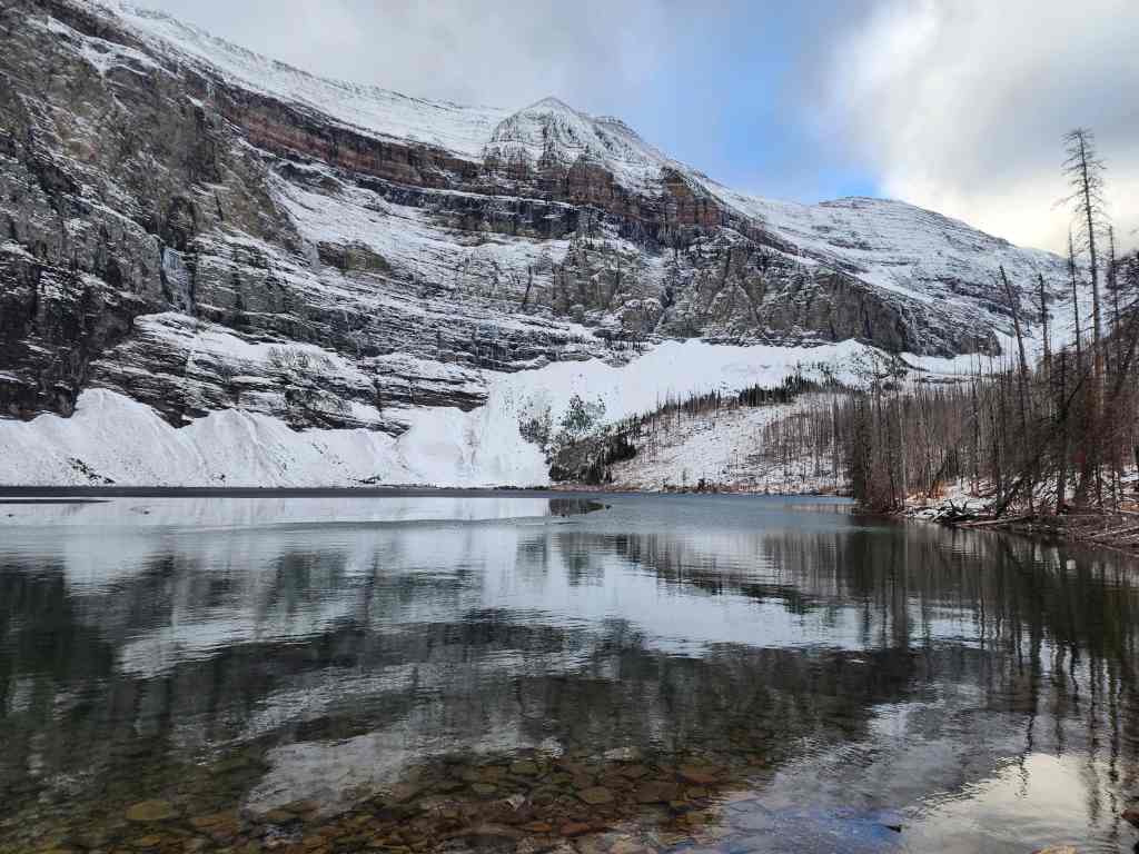Though the wind was howling up top, down by the lake it was gorgeous morning. The sheltered approach from the northwest wind was a big reason why we chose Mount Ashman for today. (Photo by Brad Wolcott)