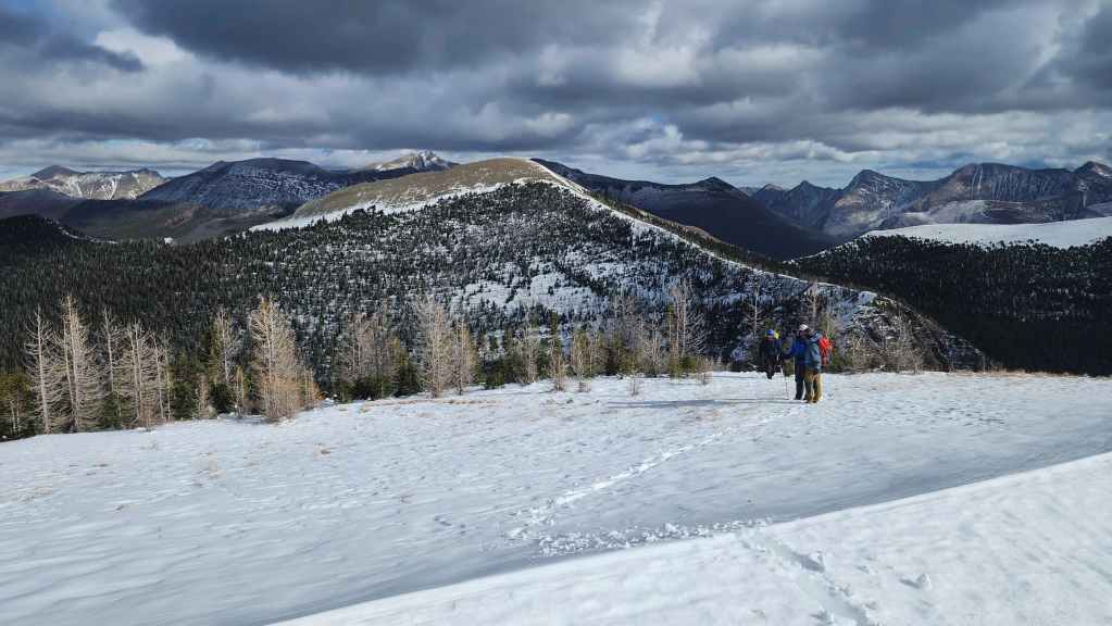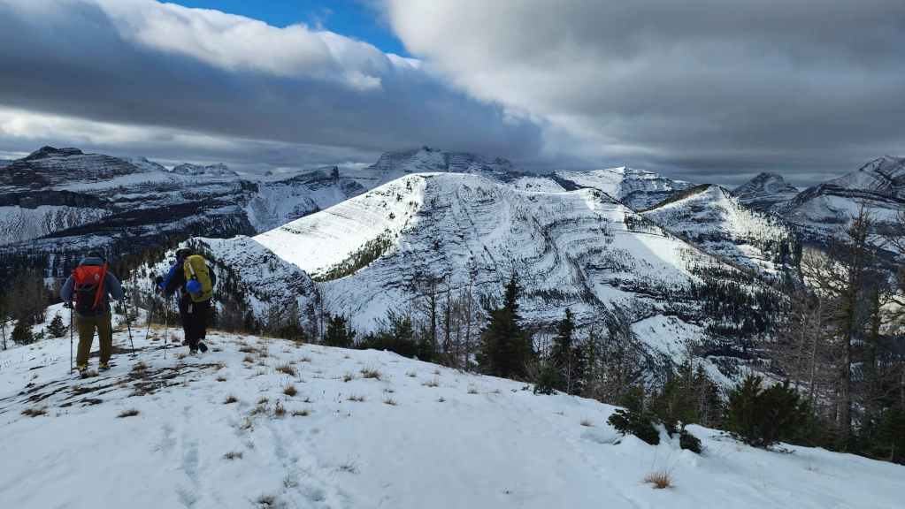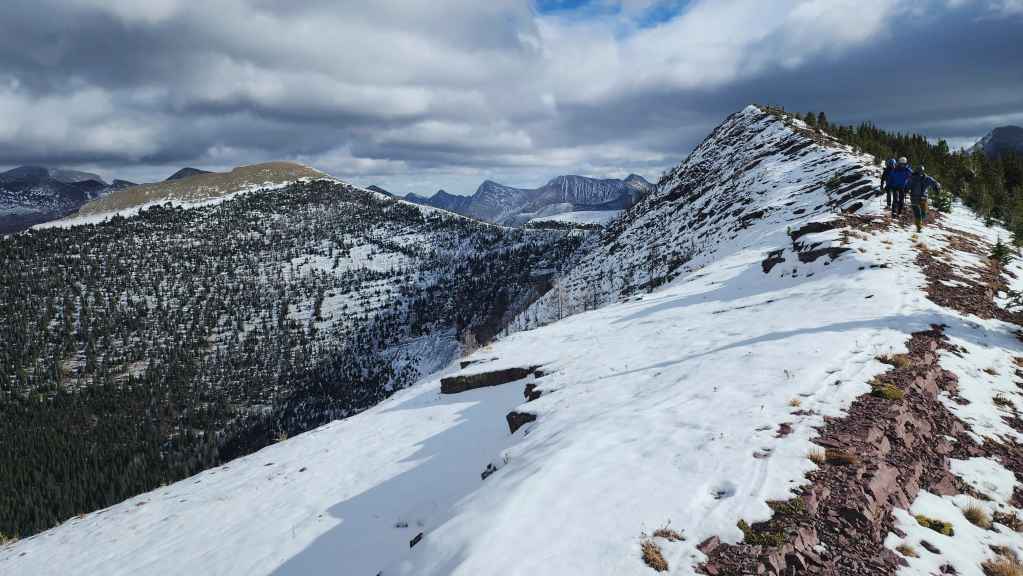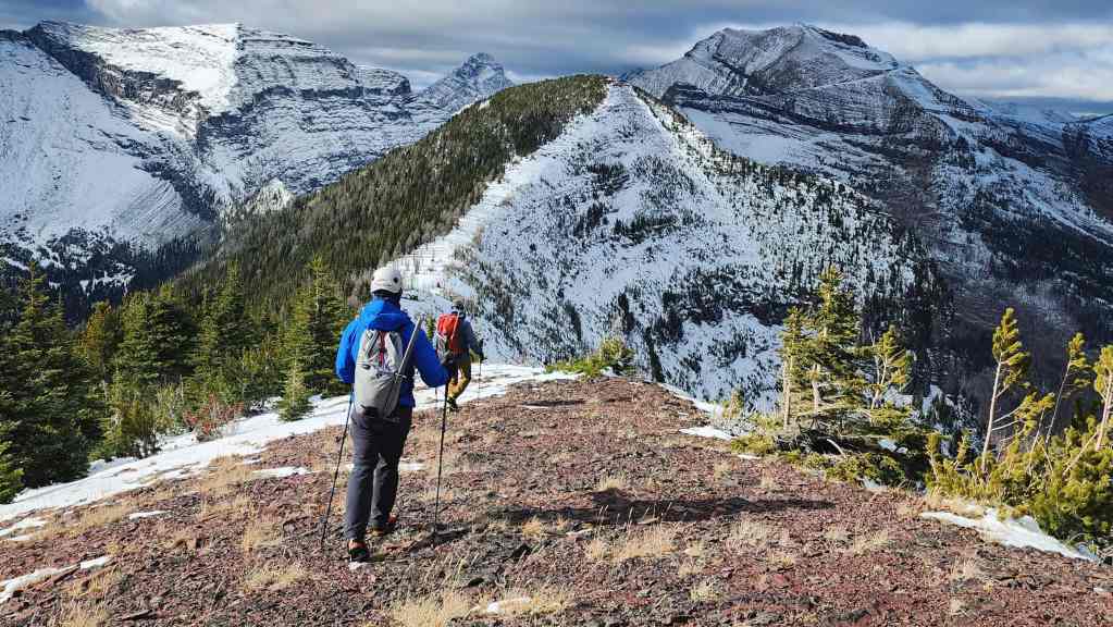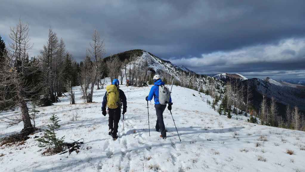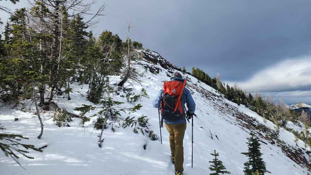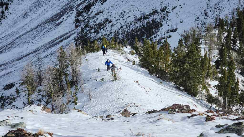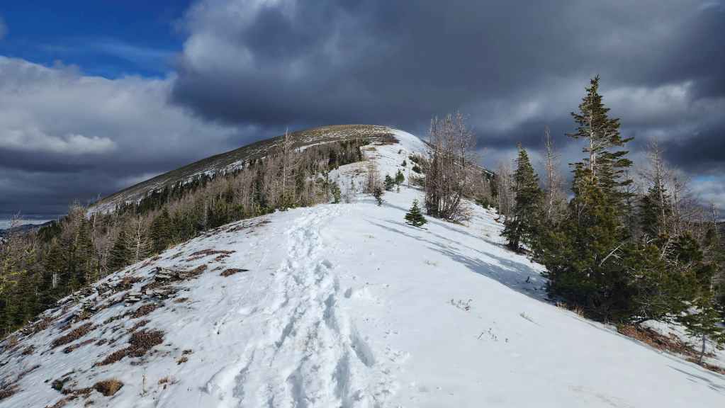 To stay out of the wind, we found a trail that we could use to traverse underneath “Bennett Peak” and onto Ashman Ridge.