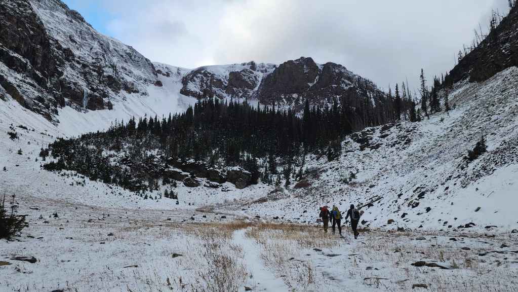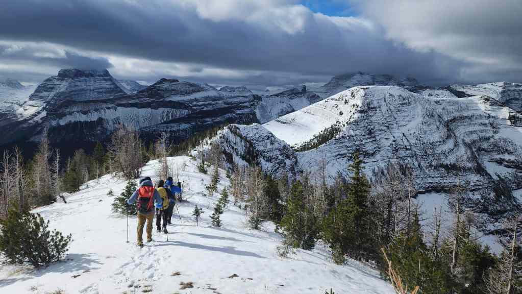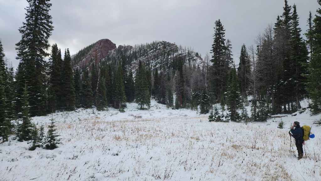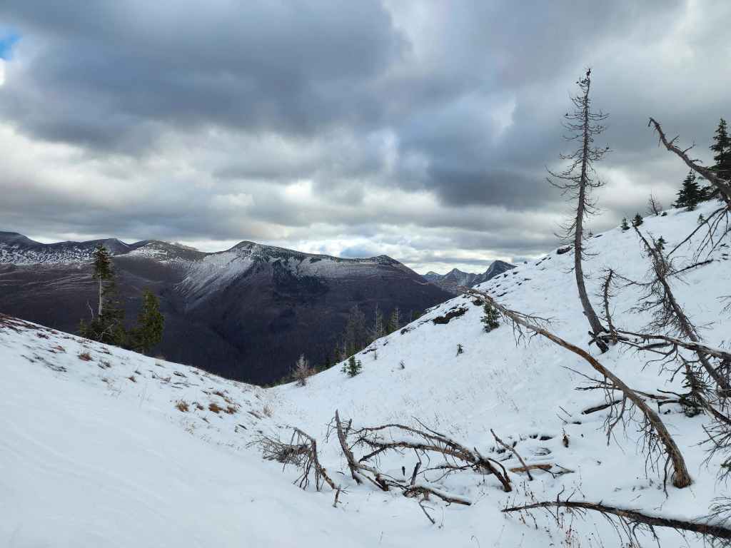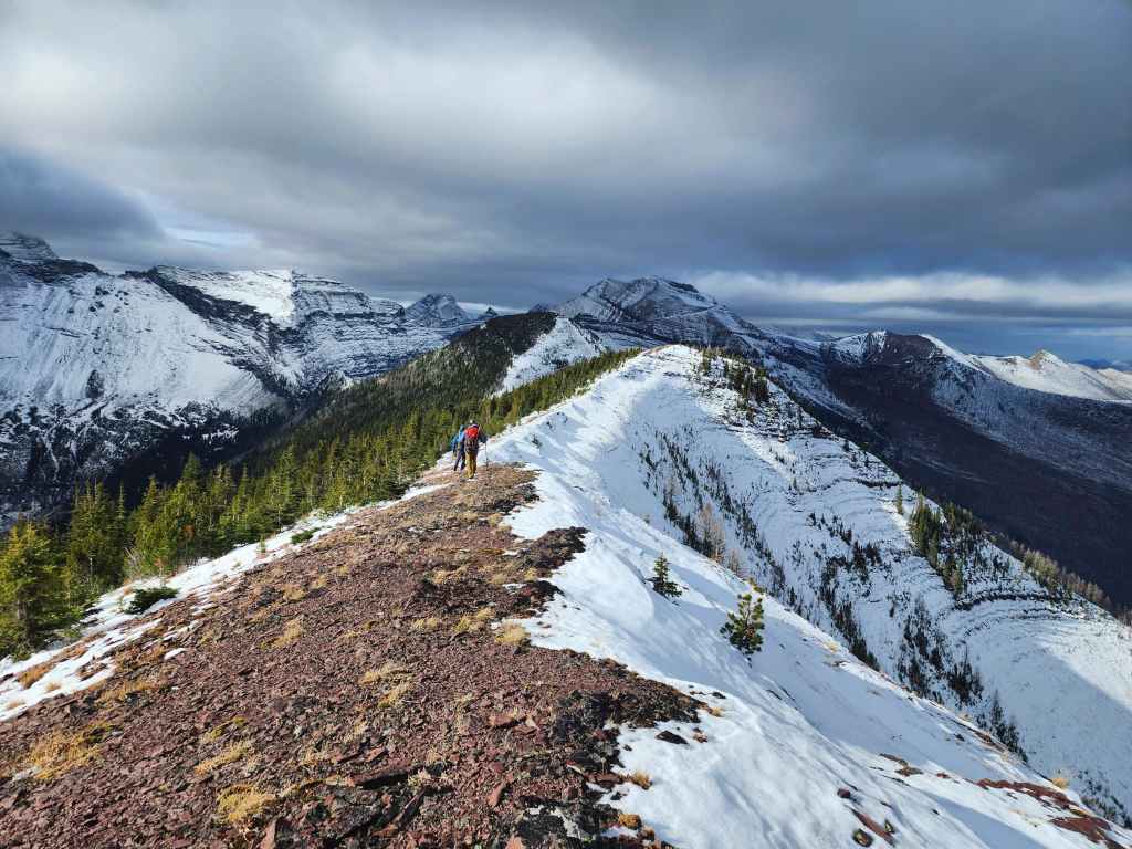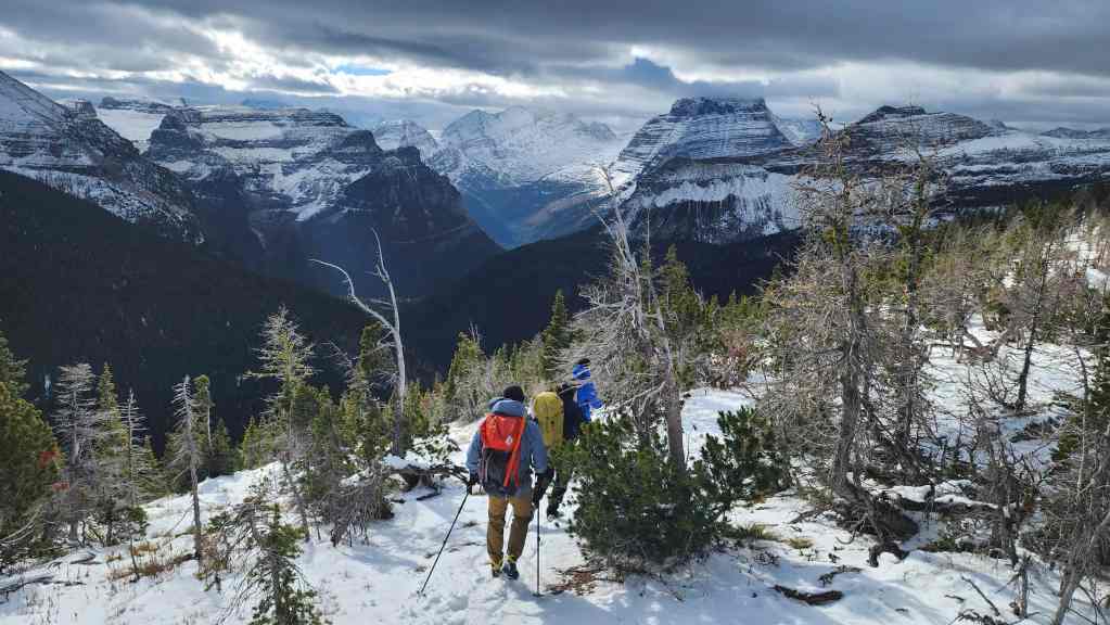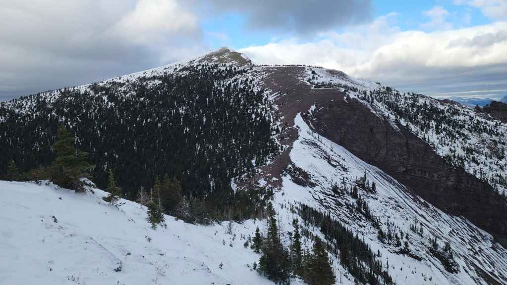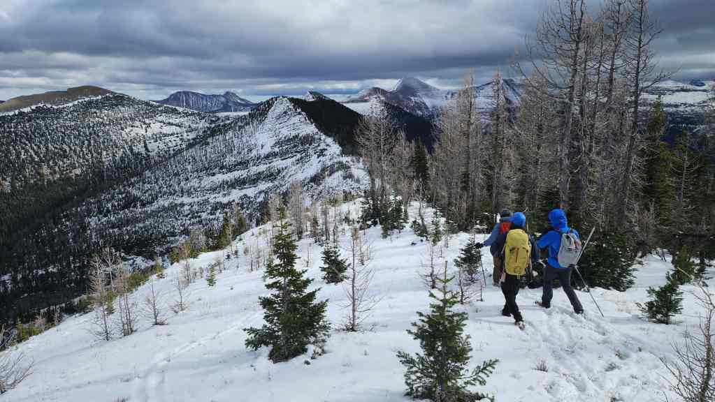 To stay out of the wind, we found a trail that we could use to traverse underneath “Bennett Peak” and onto Ashman Ridge.