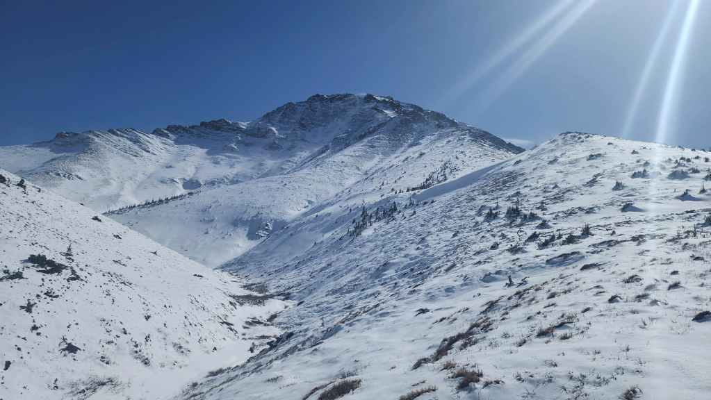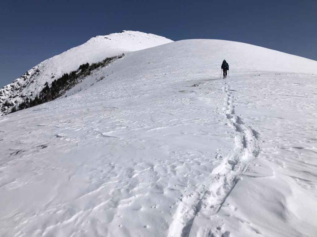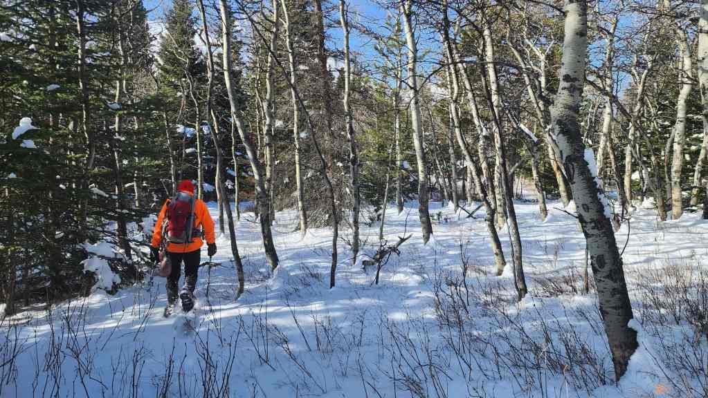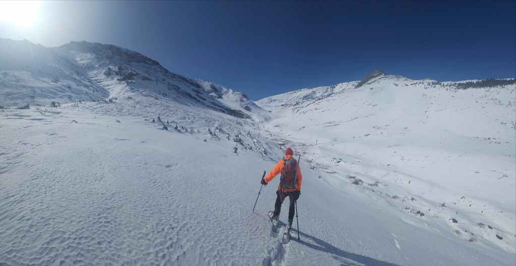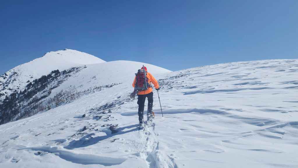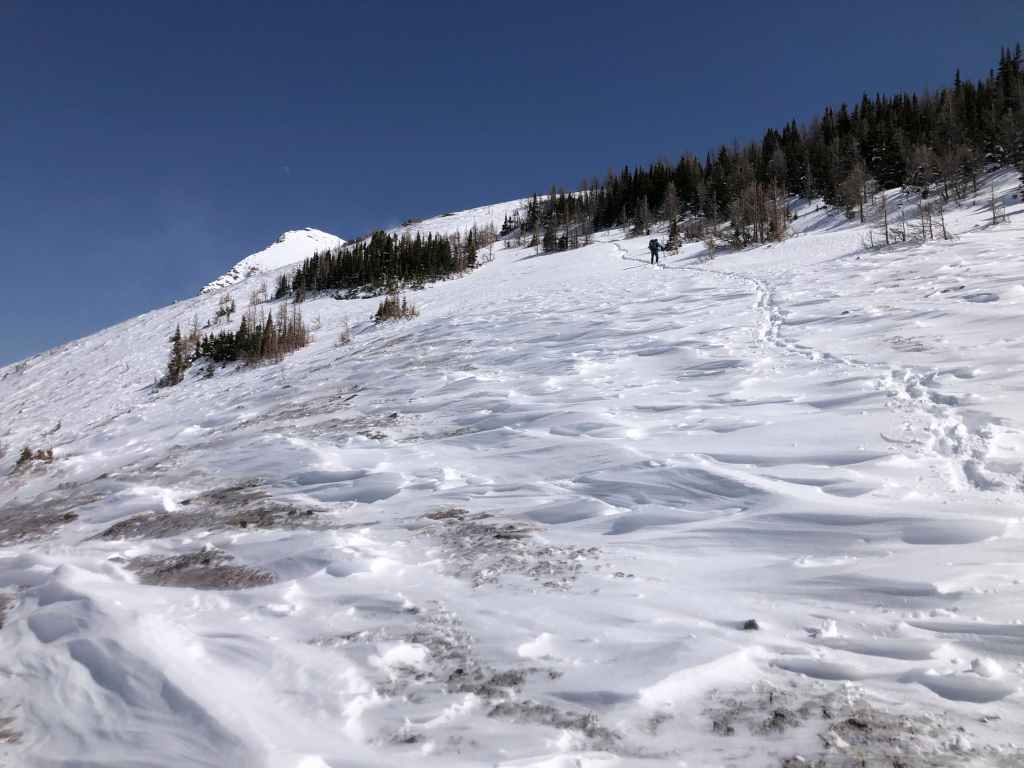 Unsure which option we’d choose, we knew from the start that this would be a snowshoe given the amount of snow that had fallen. Indeed, by the time we reached the ascent slope for “The Horn” roughly 4 km from the trailhead, we were knackered. Not having Brad with us, meant that we actually had to do the trail breaking ourselves and we weren’t used this. 😂