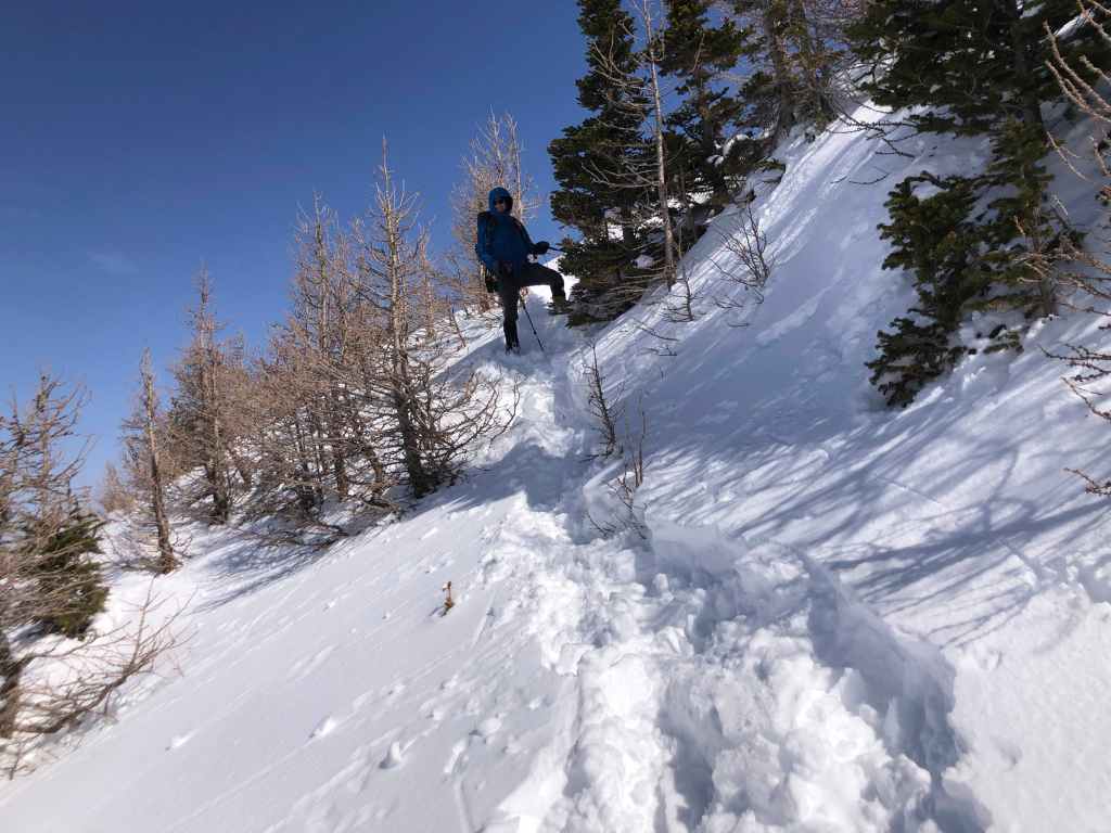 The snow made it hard to follow the trail, but we knew that if we kept heading straight, we’d eventually find it along the edge of the ridge.