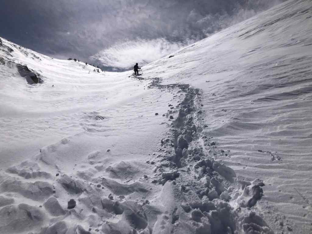 Though reaching Centre Peak seemed like good option, the consistency of the snow made us think twice about making the required traverse beneath the summit. (Photo by Andrew Nugara)