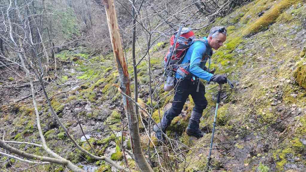 We decided to confirm that this was indeed the old road that we had found, so we kept bushwhacking.