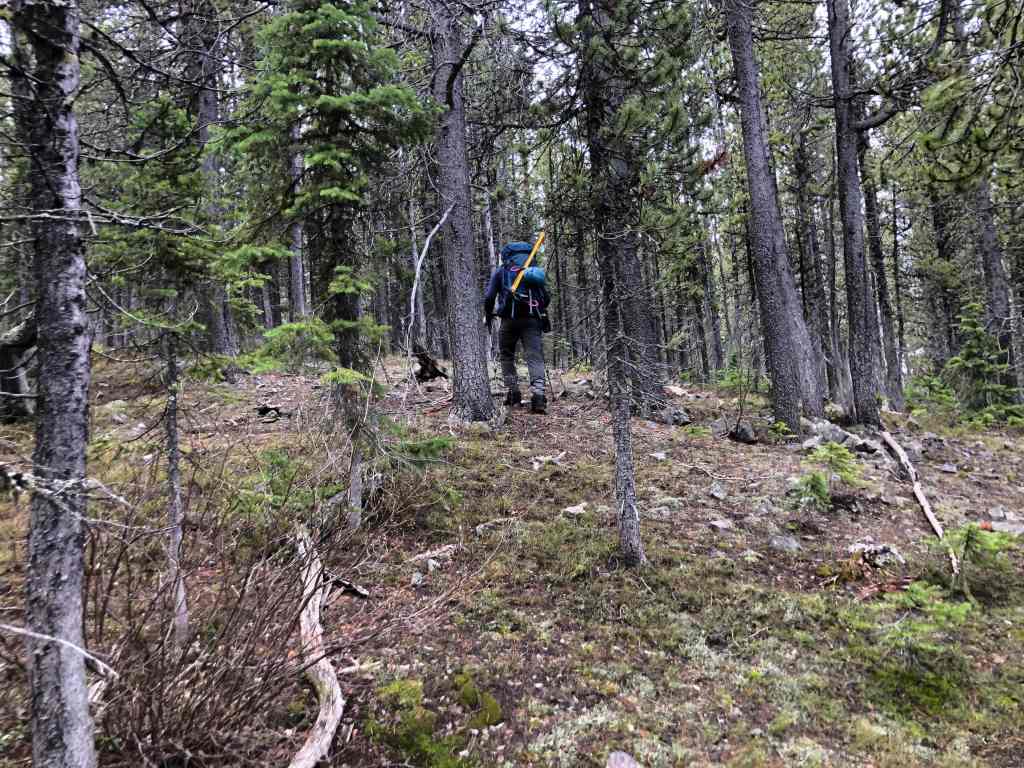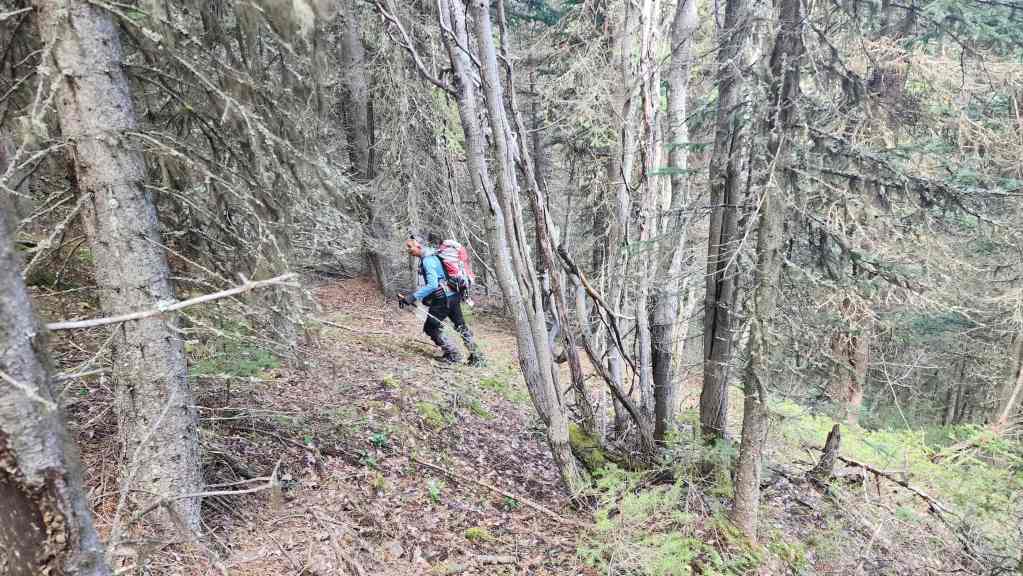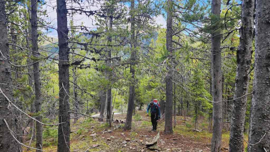 Arriving on the summit of Marten Ridge (2135 m). We are actually following a very old road. (Photo by Andrew Nugara)