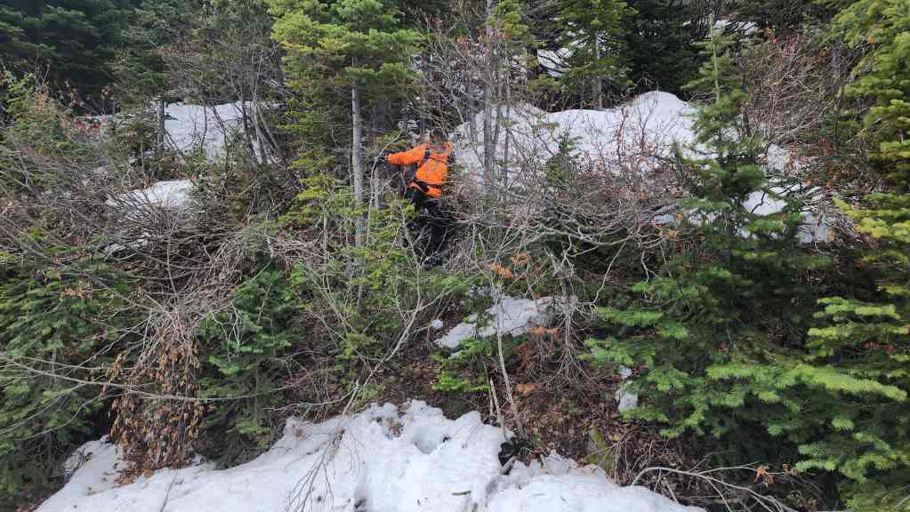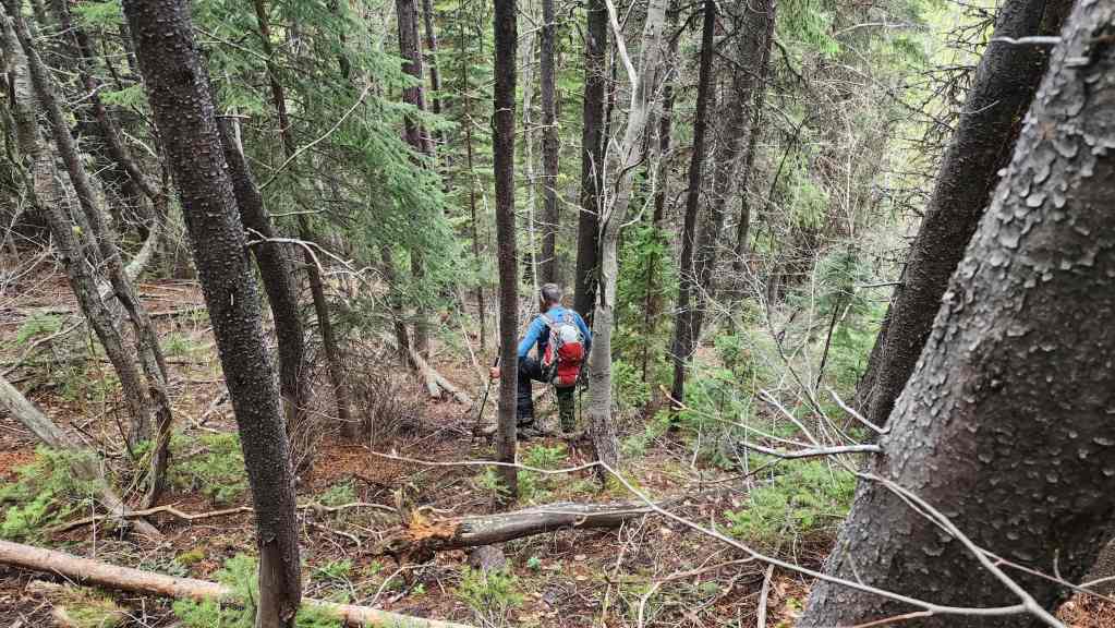 I will say one thing about descending this mountain. While following the ridge up is fairly straightforward, it’s easy to go off course when you are coming down through the trees. We made this mistake while descending from the old road and we ended up in more bush and deadfall than we encountered at any point coming up. It took quite a bit of traversing to get us back on track and onto terrain like this.
