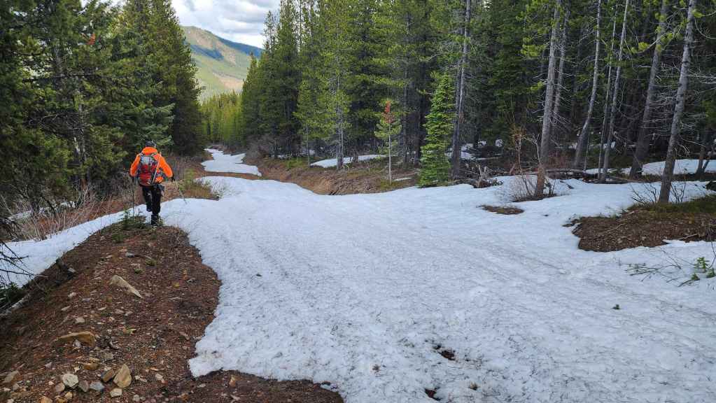 Oh, I should also give a shoutout to the massive grizzly who earlier in the day, had done a bunch of post-holing along the road near the summit of Marten. Though he was headed down and we were headed up – thankfully a few hours apart – we could take advantage of his efforts which made things much easier. Thanks Mr. Grizz and I’m glad we never met! 😂