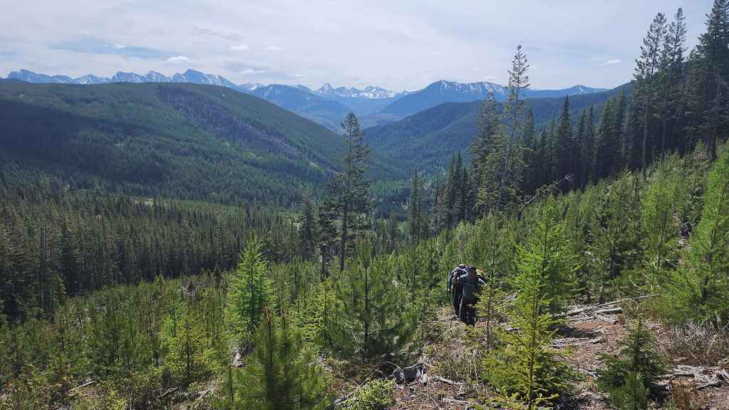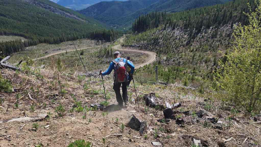 Hiking along the SPUR B2 road with the summit of Sparwood to the right of centre.