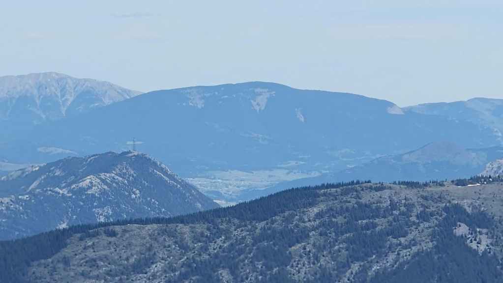 It took us exactly 2 hours to reach the summit from our vehicles and then only 1 hour to drop straight down the east slope, where we discovered that had we driven a bit further at the start of the day, we could’ve followed a side road up to a clearing that would have saved us ~200 m in elevation. Oh well. That extra bit of hiking was easy and was probably better for our health which is why we’re now ripped like Greek gods. 😂