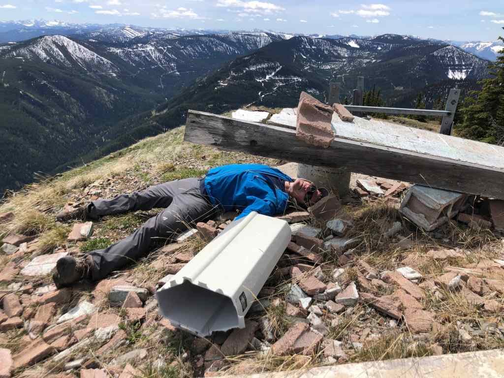 Inspecting the ruins of the Natal Fire Lookout. (Photo by Andrew Nugara)