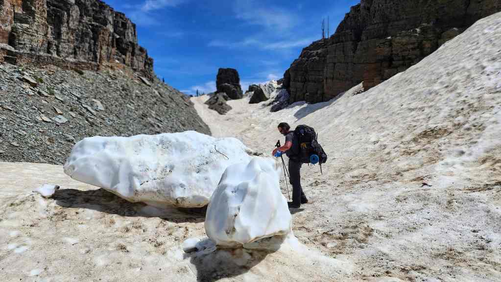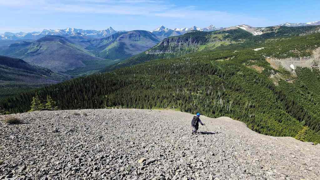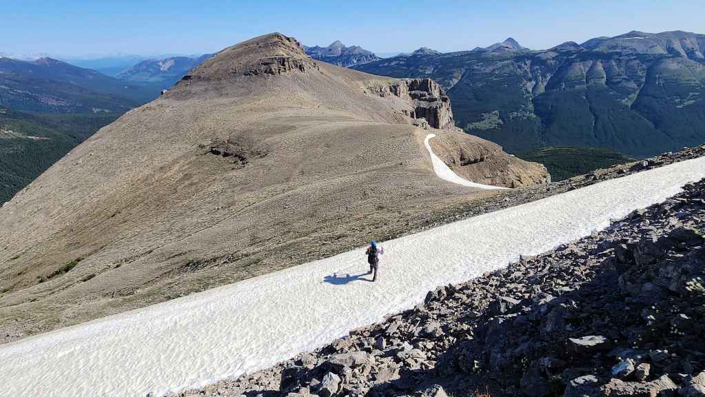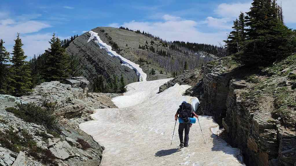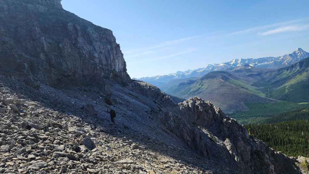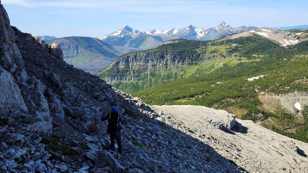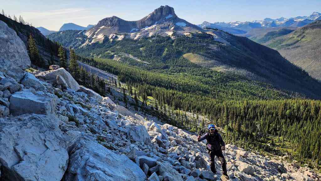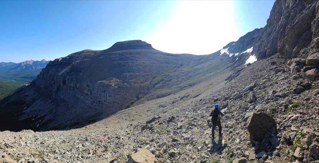 When we set off for Matkin, we already had an idea of the route thanks to Cornelius Rott. However, instead of going straight up a scree slope to gain the west shoulder of the mountain, we left the Great Divide Trail (GDT) where it crossed a large open slope after only a few minutes of hiking down the trail. From here we traversed our way onto the west shoulder where we rejoined Cornelius’ route.