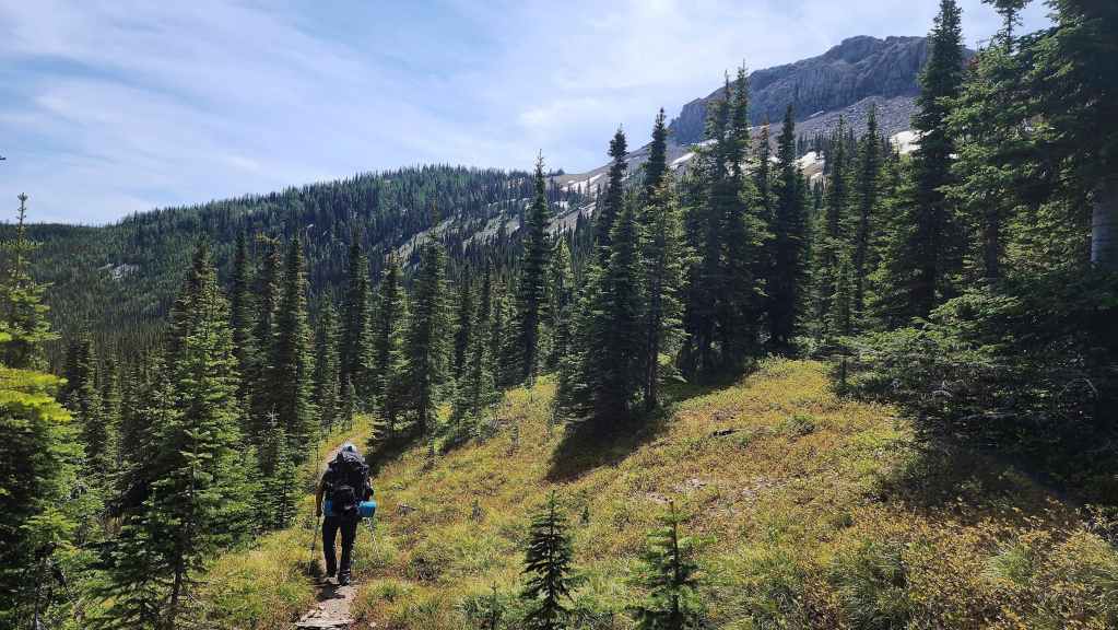 Before emerging onto Sage Pass. For reference, it took us 3 hours and 20 minutes to cover the ~9.1 km (505 m elevation gain; 417 elevation loss) distance from our campsite to Sage Pass.