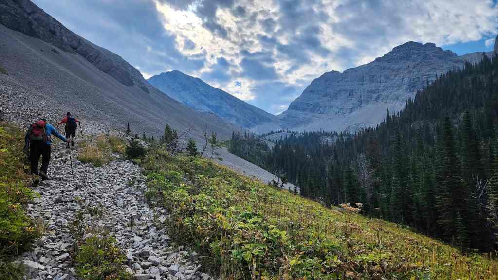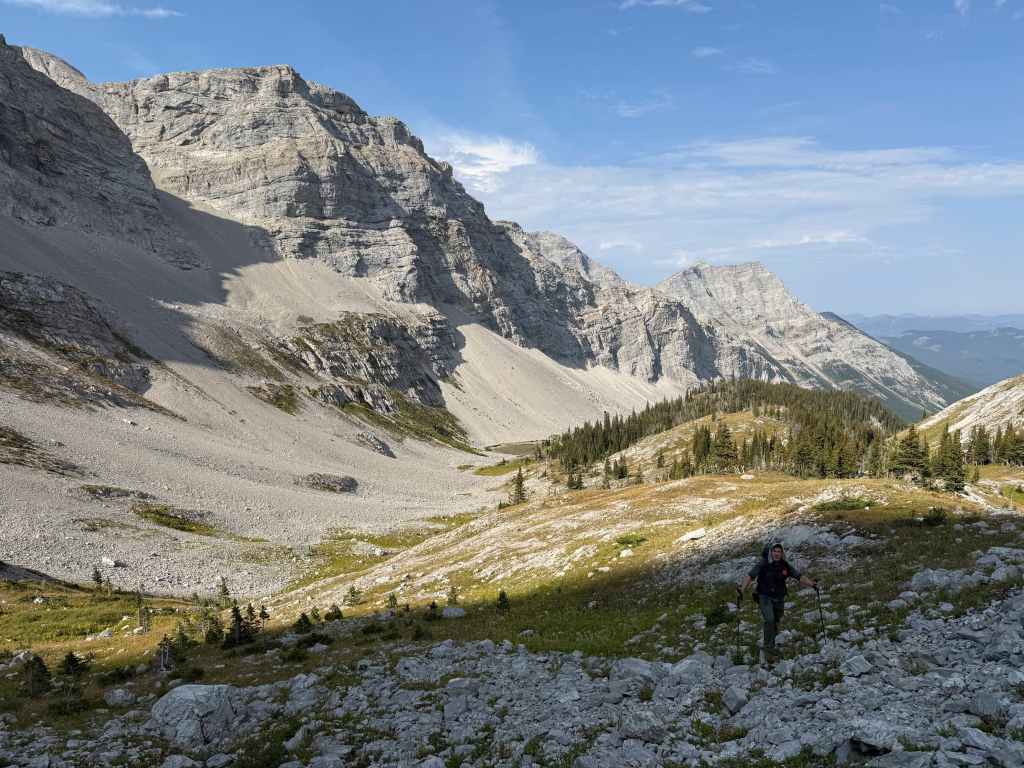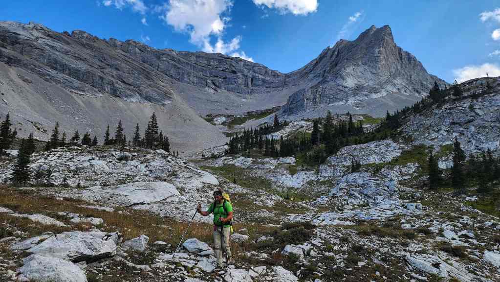 Arriving in the Andy Good Basin. For reference it took us 1 hour and 24 minutes over ~3.8 km from where we left our bikes. From the trailhead this equated to 2 hours and 24 minutes over ~8.8 km.