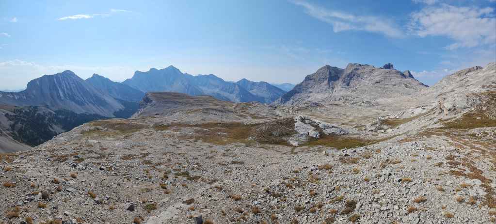 Located above the Andy Good Plateau and the Promised Land (Ptolemy Plateau) in the Crowsnest Pass, these two unofficial peaks are ascended several times a year by backcountry campers and day hikers; though the real attraction is the network of caves, most notably Gargantua and Cleft. While “Promised Land Peak” and “Gargantua Peak”, look gnarly from both the Andy Good Basin and the Promised Land, they are relatively easy to ascend which is why they see regular traffic. In fact, this was Brad’s second time on “Gargantua Peak”, with his first ascent occurring over thirty years ago alongside his dad. For me, it was roughly that same length of time since I last visited the Andy Good Plateau, but sadly, I did not visit either peak, so both summits were new terrain for me.
