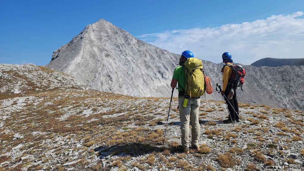 To get to “Gargantua Peak” we’ll have to descend to its col (far left) with “Promised Land Peak”.