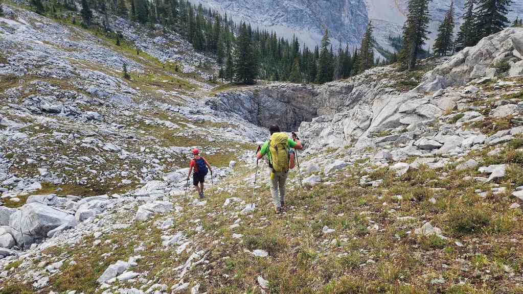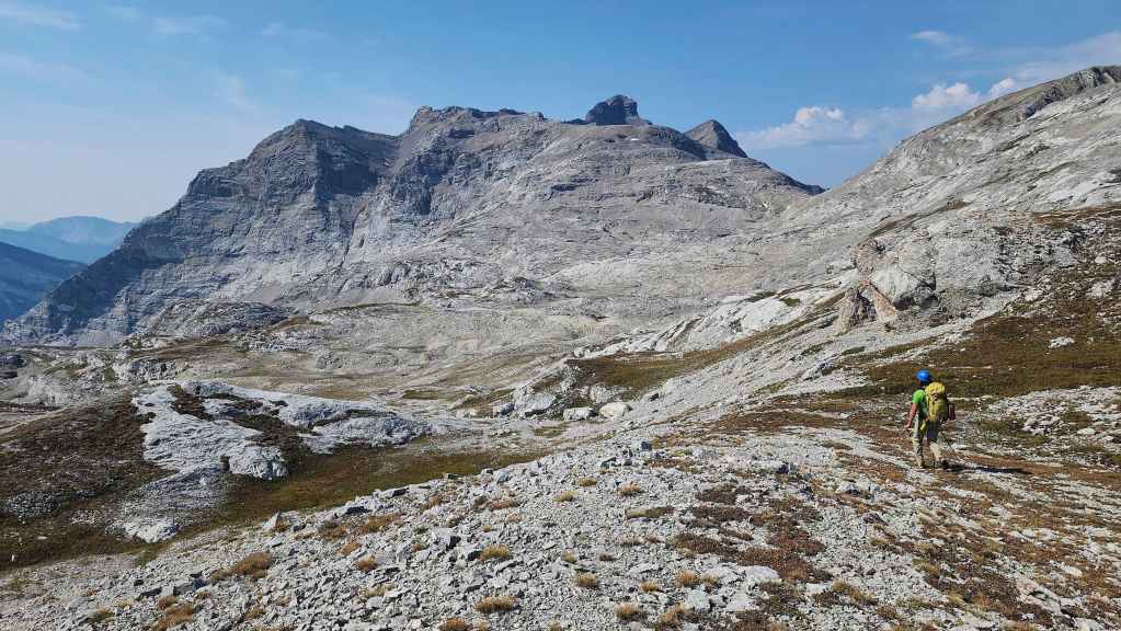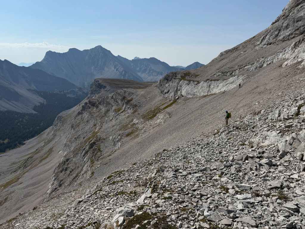 Circling the base of “Promised Land Peak” to find an easy route to the top.