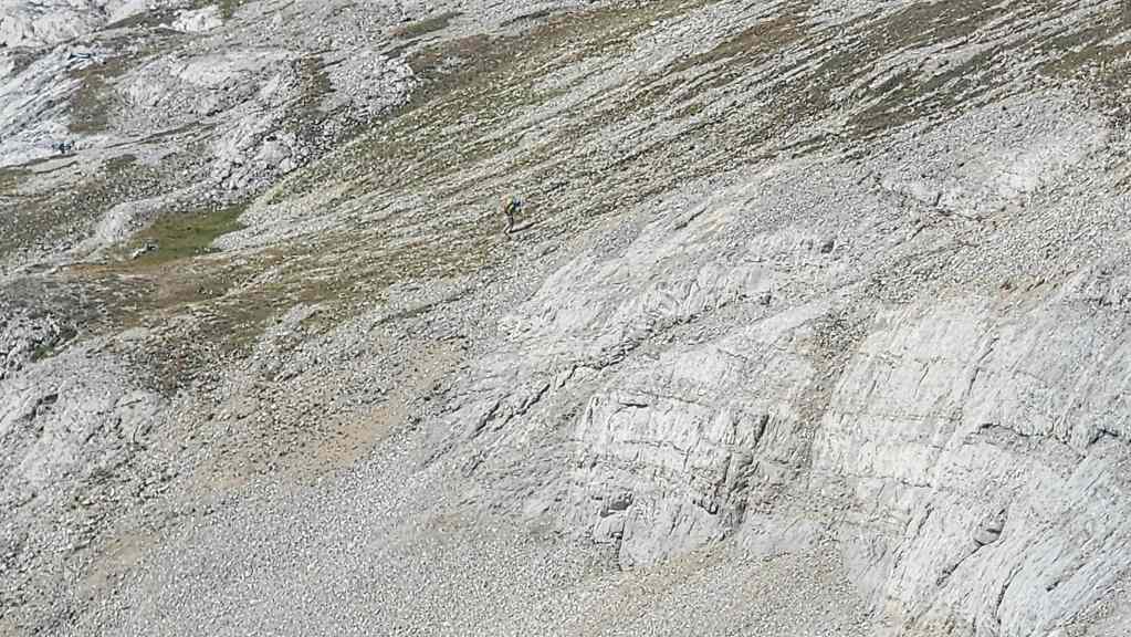 Geoff (centre) makes a speedy ascent towards the col, while the rest of us enjoy a more leisurely pace.