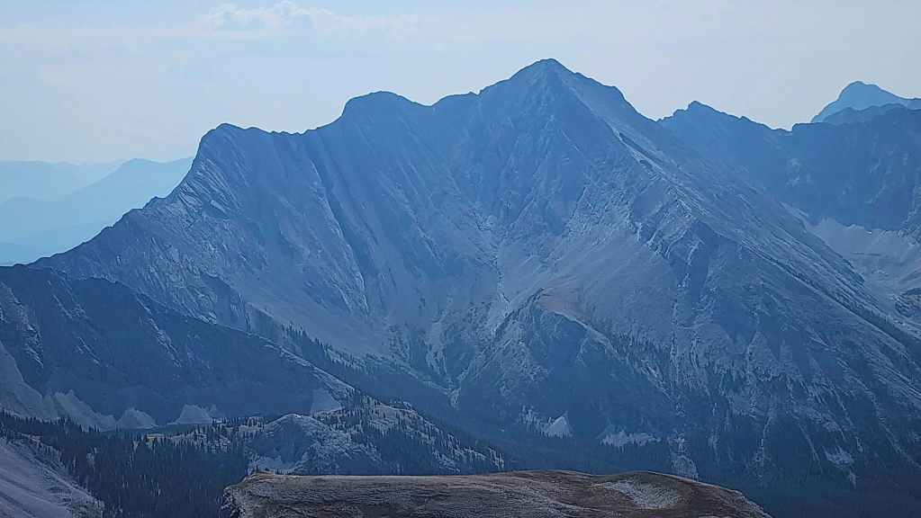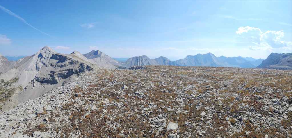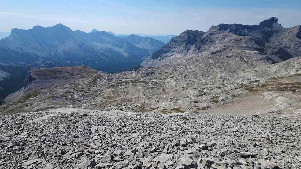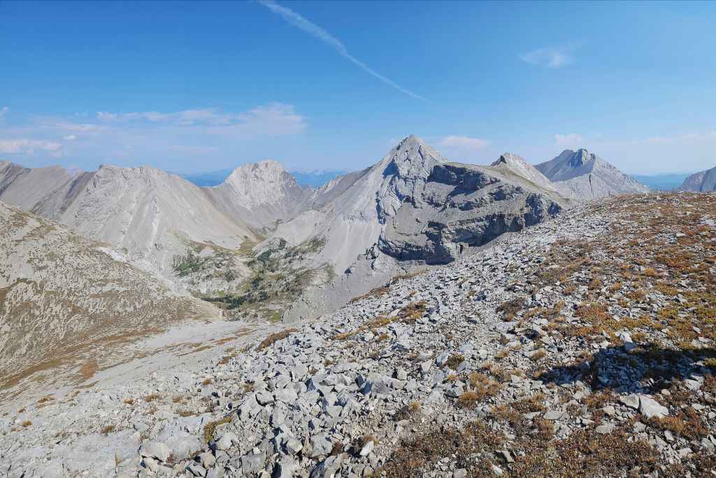 Gazing to the north at Chinook Peak (centre) with “Gargantua’s” sub-peak in the foreground.