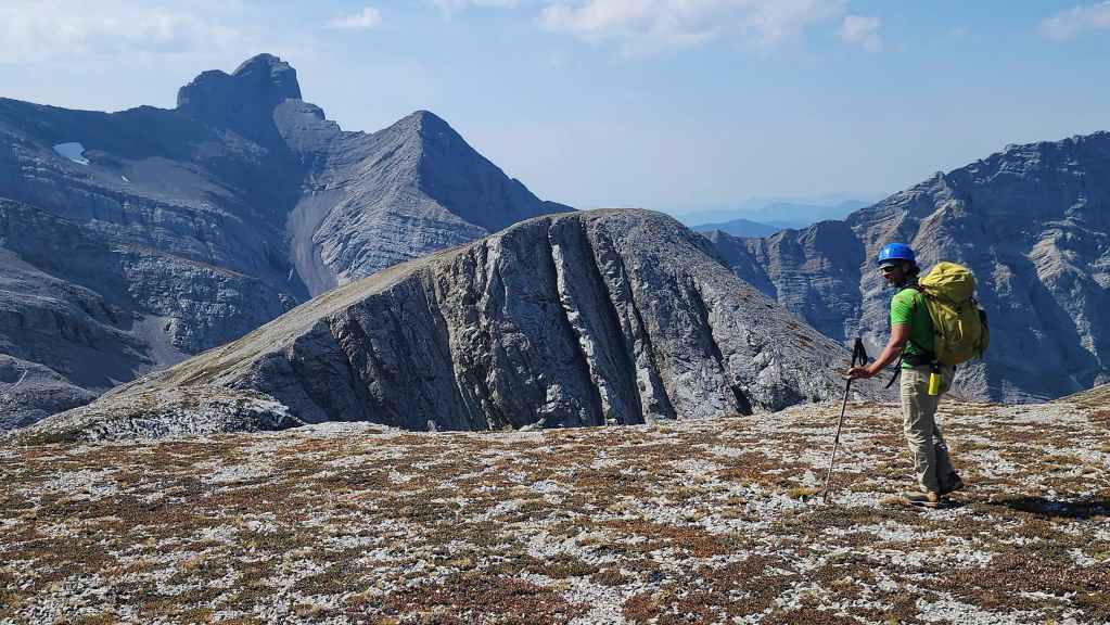With Geoff on his way down, we decided to begin the easy ~300 m traverse over to the Andy Good Plateau. (Photo by Andrew Nugara)