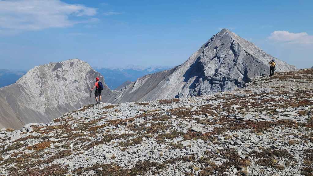 Heading over to “Gargantua Peak” (centre). (Photo by Geoff Hardy)