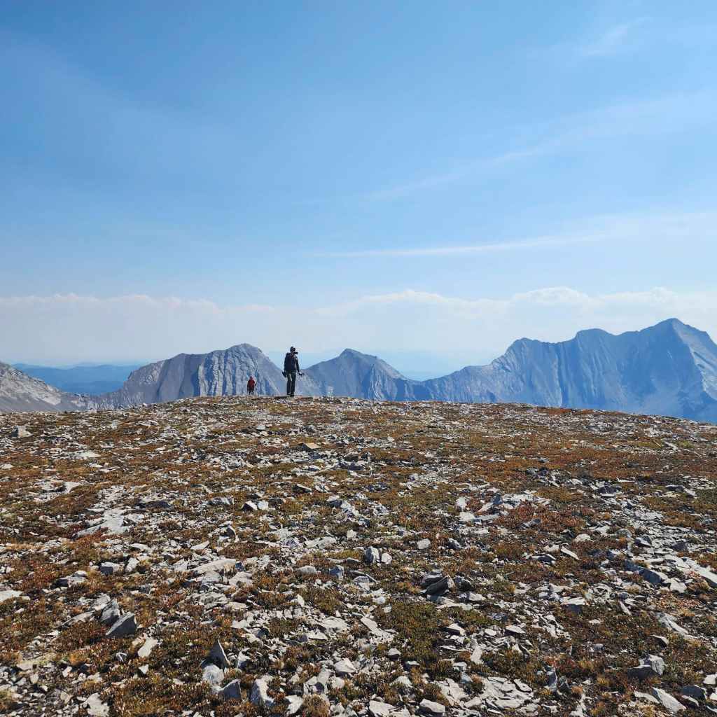 Once Geoff was on his way down, we made the easy ~300 m traverse over to the Andy Good Plateau. After Geoff joined us, it was a simple matter of following the base of “Promised Land Peak” to the west until we found an easy scramble route to the top.