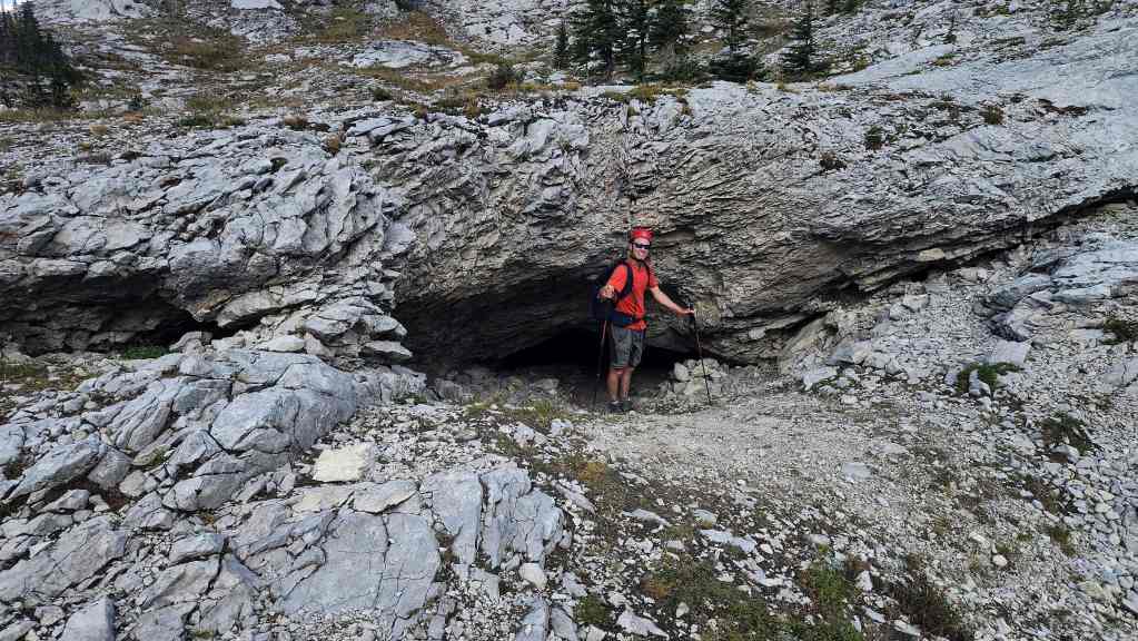 Geoff stands at the entrance to a different cave. There was no shortage to choose from.