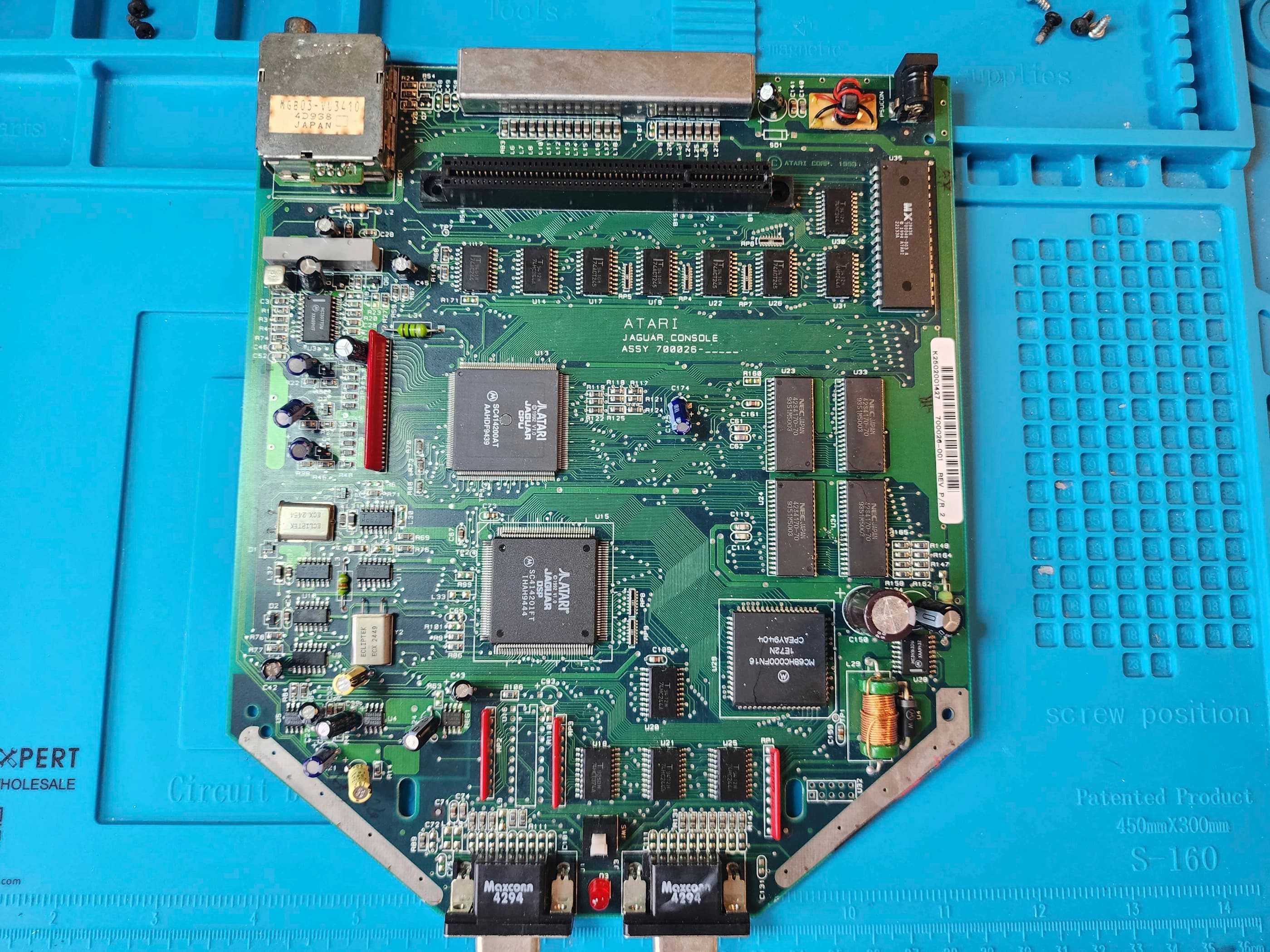 A few weeks later, the chip arrived and I got to work. I used a heat gun to remove the IC, positioned the new one and soldered it into place. As the chip was so small, I had to work while looking through a magnifying glass (I’m old). A few minutes later I had the chip successfully soldered onto the pads. Not my best looking work, but it was on there. I then plugged in a cartridge and powered the system on. I was instantly greeted with the Jaguar roar and then full sound in the game. Success! 😀 I reassembled the system and gave it another test and everything was still working. I now have a fully working Jaguar and look forward to collecting more games for it.