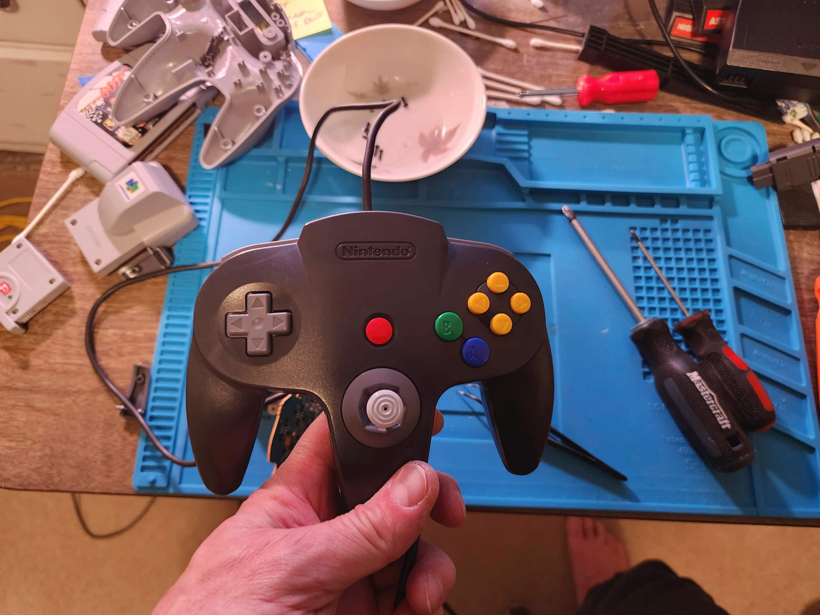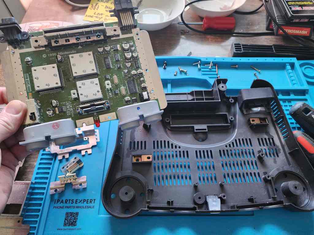 Project Details: I will always associate the N64 with GoldenEye. This was the first game that I played on this system and I was instantly sold. My kids also remember that game, but I think their favourite has to be Mario Kart 64. I purchased this console from a colleague who was the original owner and who had taken immaculate care of it over the years. All the manuals were preserved in the same way comic books are and the console case and controllers had few if any, signs of wear. Though it had been in storage for several years, it was fully functional and all I had to do was take it apart, give it a cleaning, and put it back together. I also took both controllers apart and did the same thing and viola! Our family now enjoys playing this system whenever they can.