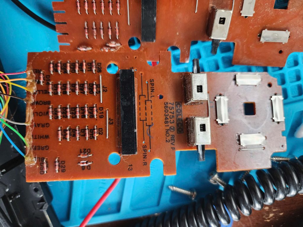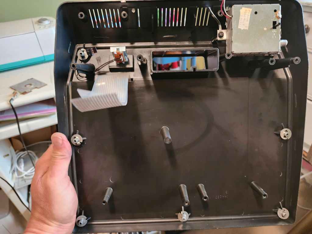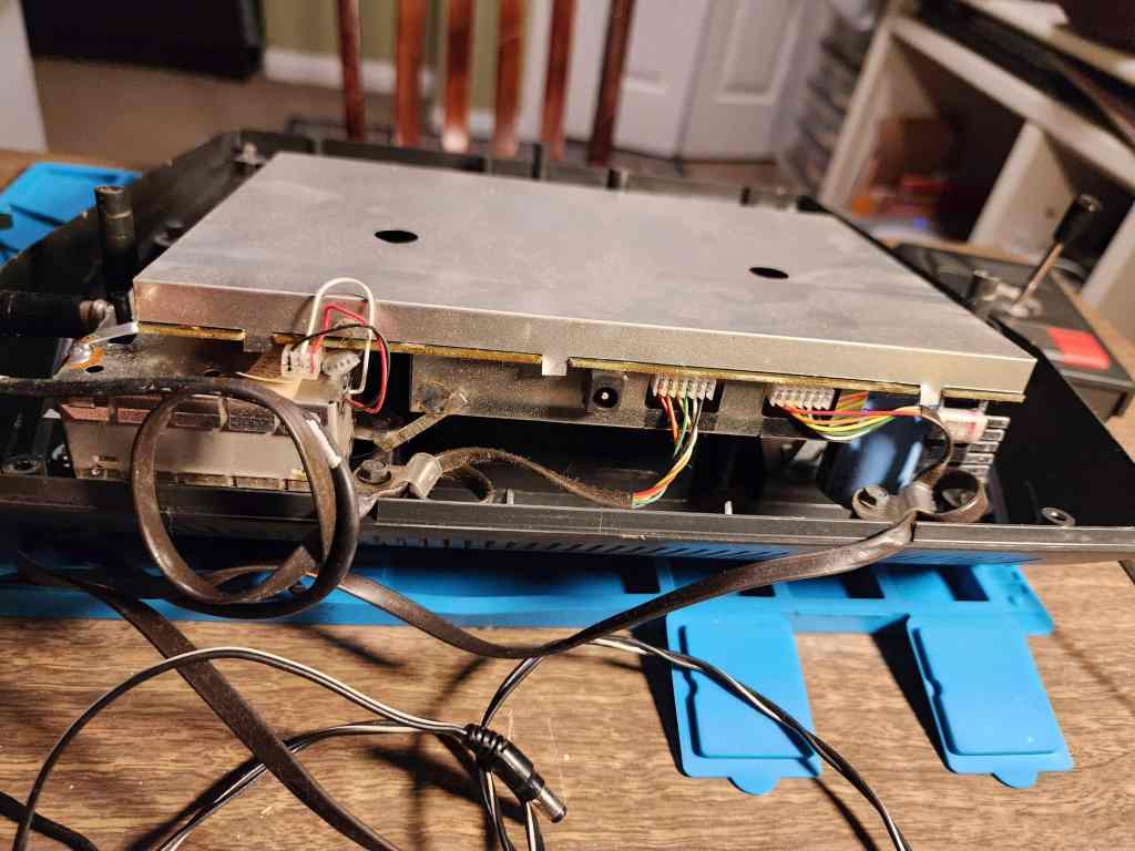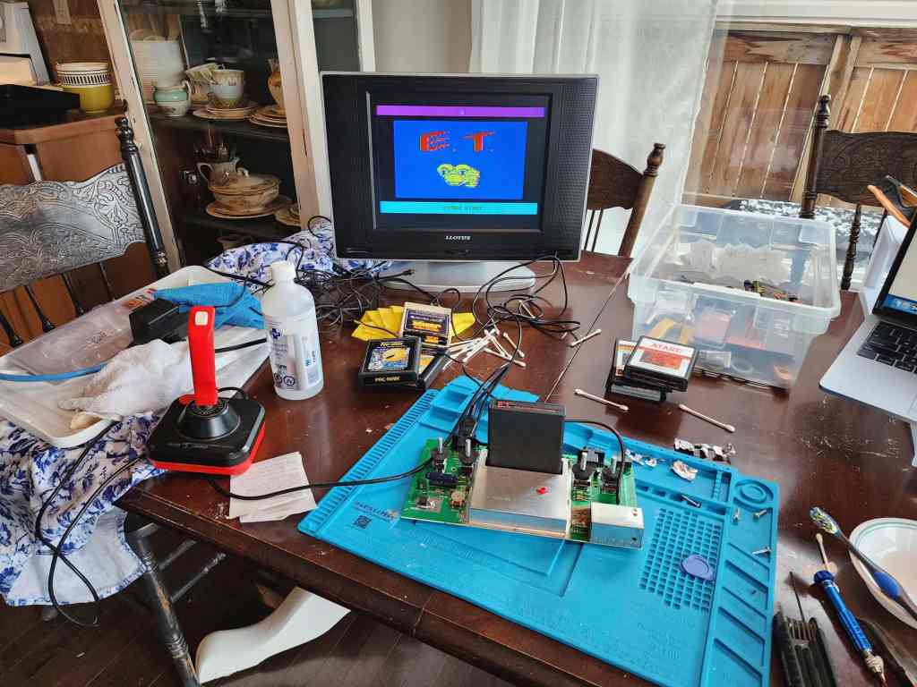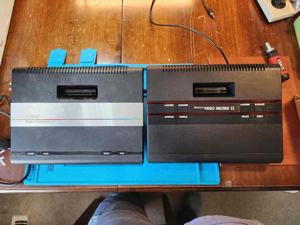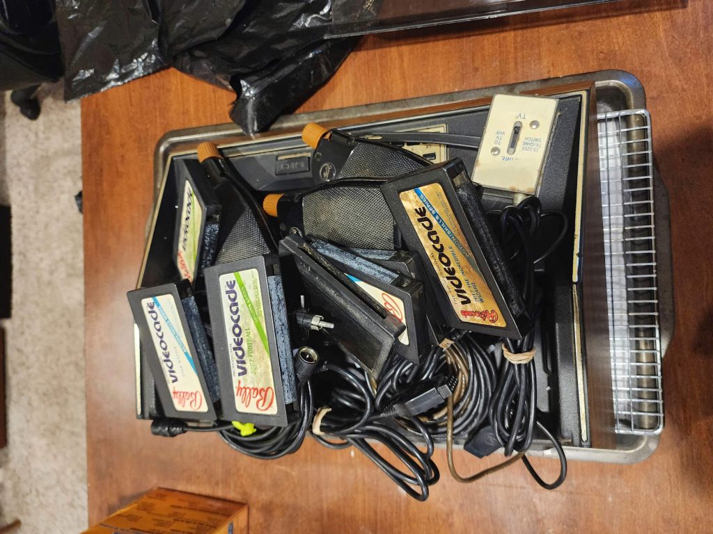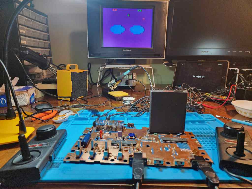 Project Details: I acquired this unit locally and it was partially functional. However, like the Astrocade, it came from a smoker’s home and before I could do anything, it and all its accessories had to spend several weeks sealed inside garbage bags with baking soda. When I opened the system up, I discovered it was quite dirty and there were two issues: 1) an occasional graphics glitch; and 2) an occasional sound issue where it would be fine and then suddenly shut off. After determining the power adapter was not the issue, I then desoldered and disassembled the power switch, cleaned the contacts, applied dielectric grease, reassembled, and soldered the switch back onto the board. Success! This fixed the graphics. I tackled the sound issue first by determining that it wasn’t a failing chip by connecting an external speaker via a jumper wire to ceramic capacitor C88. When I received rich and consistent sound without issue, I then zeroed in on the RF box and the audio subcarrier. Adjusting it with a homemade vinyl tool, I was able to get the sound back. However, if I squeezed the outside of the RF box the sound cutoff again, which told me there was a short somewhere. I reflowed a bunch of solder points and that seemed to fix it; however, if the issue arises again in the future, this unit may be a candidate for a composite mod. After testing the machine for quite a while and being satisfied with the results, I then cleaned it thoroughly. I also disassembled and cleaned the controller, the driving wheel, the track ball, and the Atari expansion unit. 😁