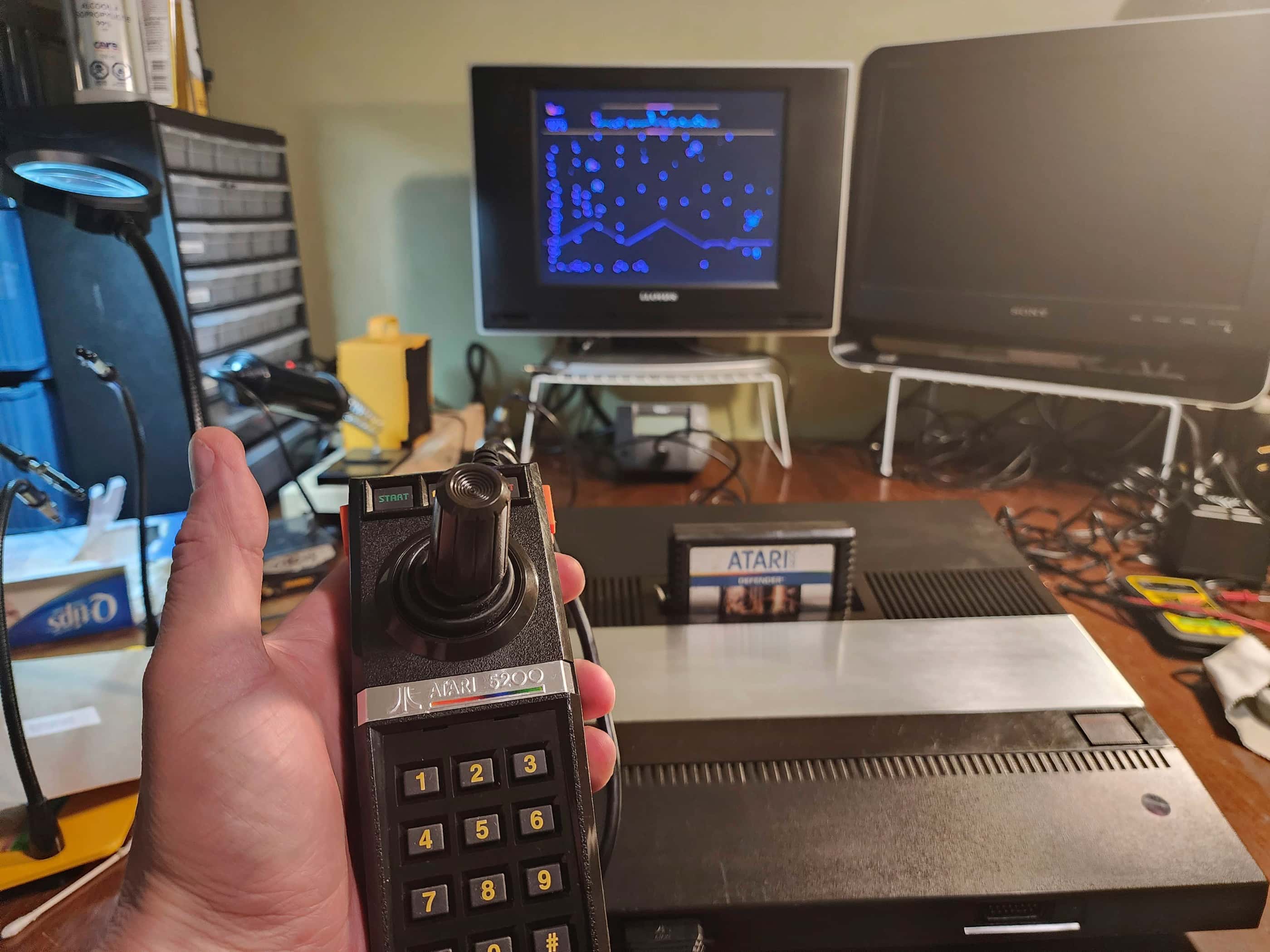 Anyway, back to the project… The system powered on without incident and Pac-Man looked and sounded like it was supposed to. The issue was, of the three included controllers, only one worked and it wasn’t great. This was a huge issue for these systems but fortunately there are companies that make new flex circuits and keypads that have improved on the original. So, instead of cleaning the flex circuits, I ordered a couple sets of rebuild kits from Atari Repair Parts. Once they arrived I took apart the system, cleaned it, and then reassembled it. Using the new parts, I then rebuilt two of the controllers (I kept the third one to be the second controller on my 2 port 5200). The result was two perfectly functioning controllers and a system that looks and runs like new. 🙂