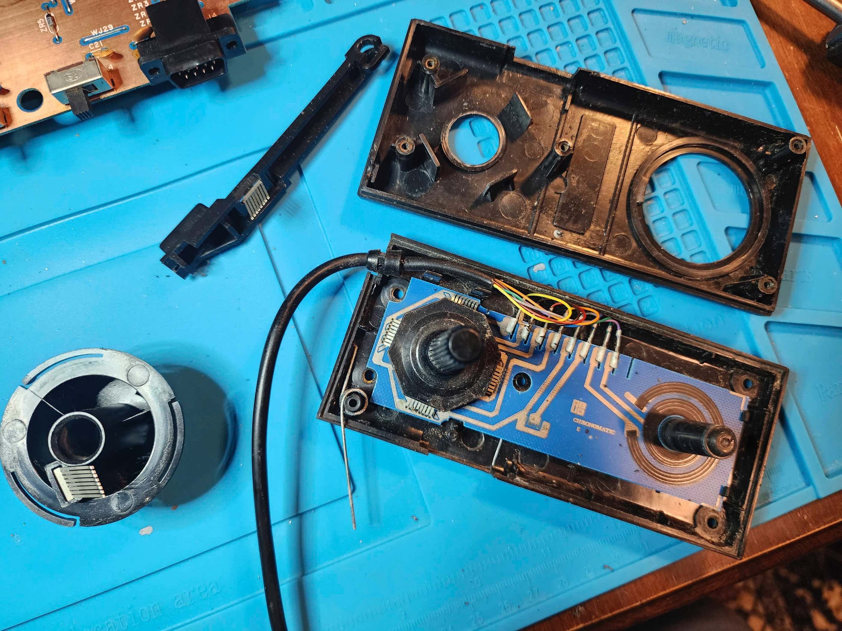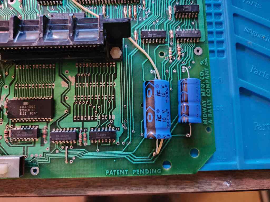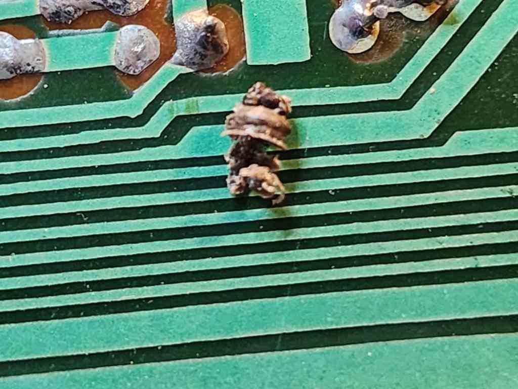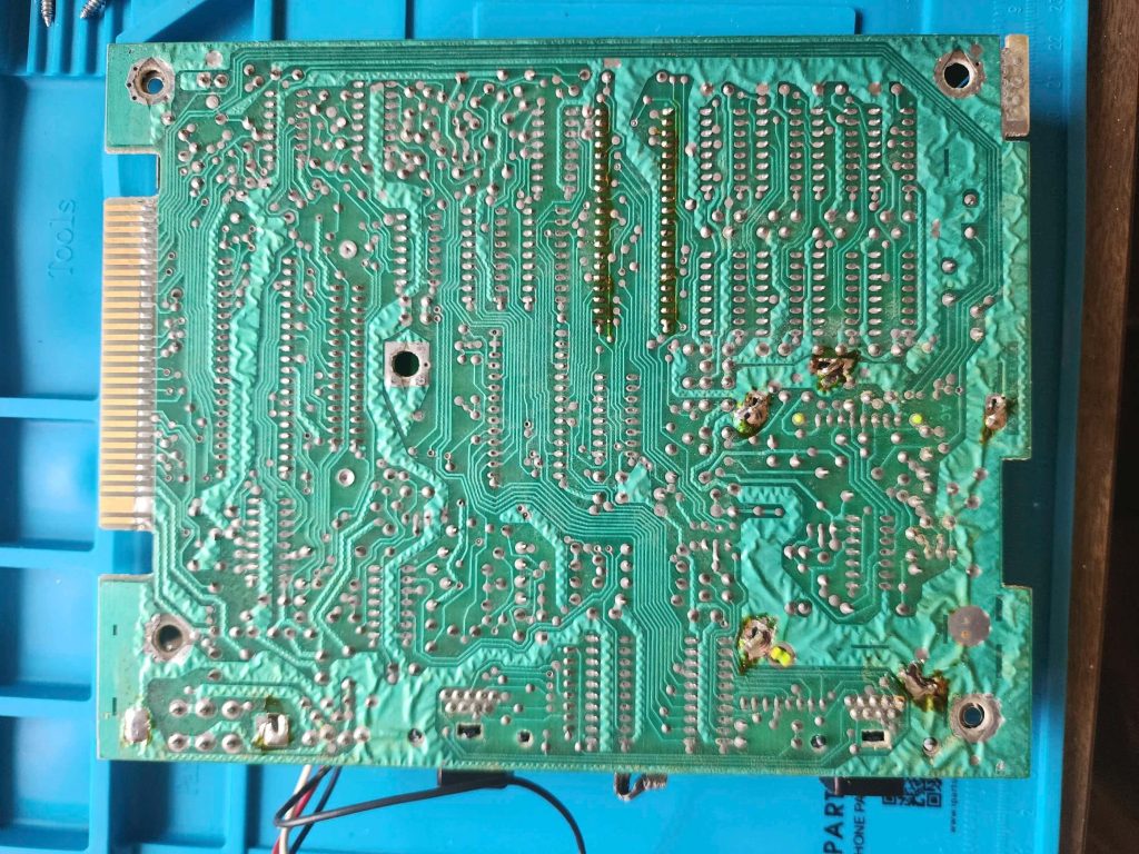 One issue fixed. For the joystick port, I continued to do continuity checks with a focus on the pins 4 & 8 that control movement to the right. Nothing came back indicating there was a problem, but I still decided to reflow and add new solder where the port pins join the board. I was surprised when the existing solder disappeared into the hole as soon as my iron touched it. I proceeded to reflow and add new solder to all the pins on both ports. I then tested it with a couple games. Both joysticks now had full movement. The second issue was now fixed. I then disassembled and cleaned the joysticks, noting that at some point, they had come in contact with water. I also discovered the exoskeleton of a bug in one. 😯 After cleaning I reassembled the joysticks and then tested them. The joysticks and paddles worked great. I decided that since the unit was still open that I’d recap it (using a 50v 4.7μF capacitor to replace the original 35v 4.7μF one) and also replace the 7805 regulator. Once done I tested it with several games and then reassembled it. The Gemini is now a fully functioning system. 🙂