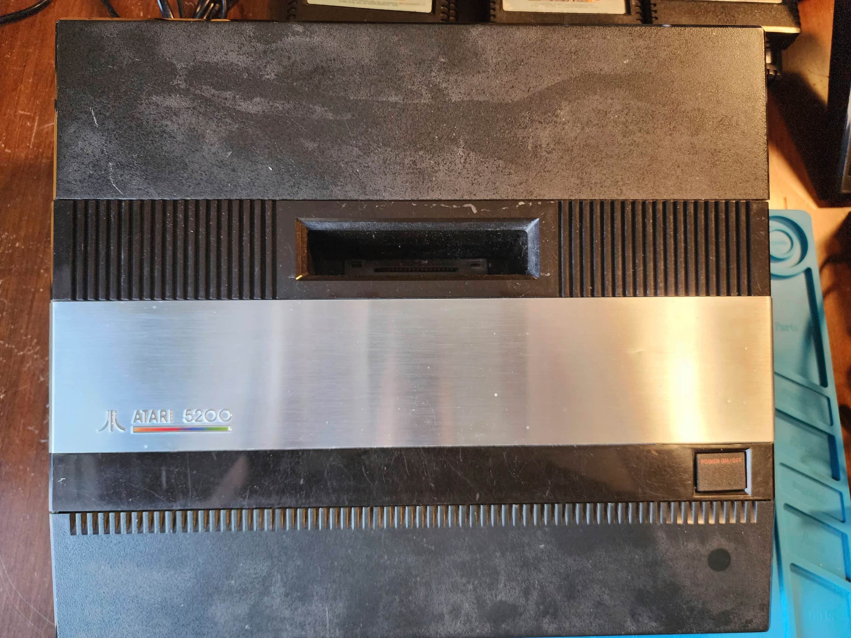 Project Details: I acquired this for a decent price and it came with one controller. The seller let me know that while the machine ‘should’ be functional, the controller had issues – quelle suprise for a 5200. When I received the unit, I tested the power supply and my multimeter initially showed 14.5v before jumping all over the map and then decreasing into the mv realm. Hmmm… 🤔 I plugged the unit in and it did not turn on. I tested the adapter again and it did the same thing. Finally, I got it to settle on a steady 14.5v. I’d never had this happen before, so speculated that the barrel of the adapter may be dirty. I cleaned it with IPA and again got it to a steady 14.5v. I plugged in the machine and presto! It powered on.
