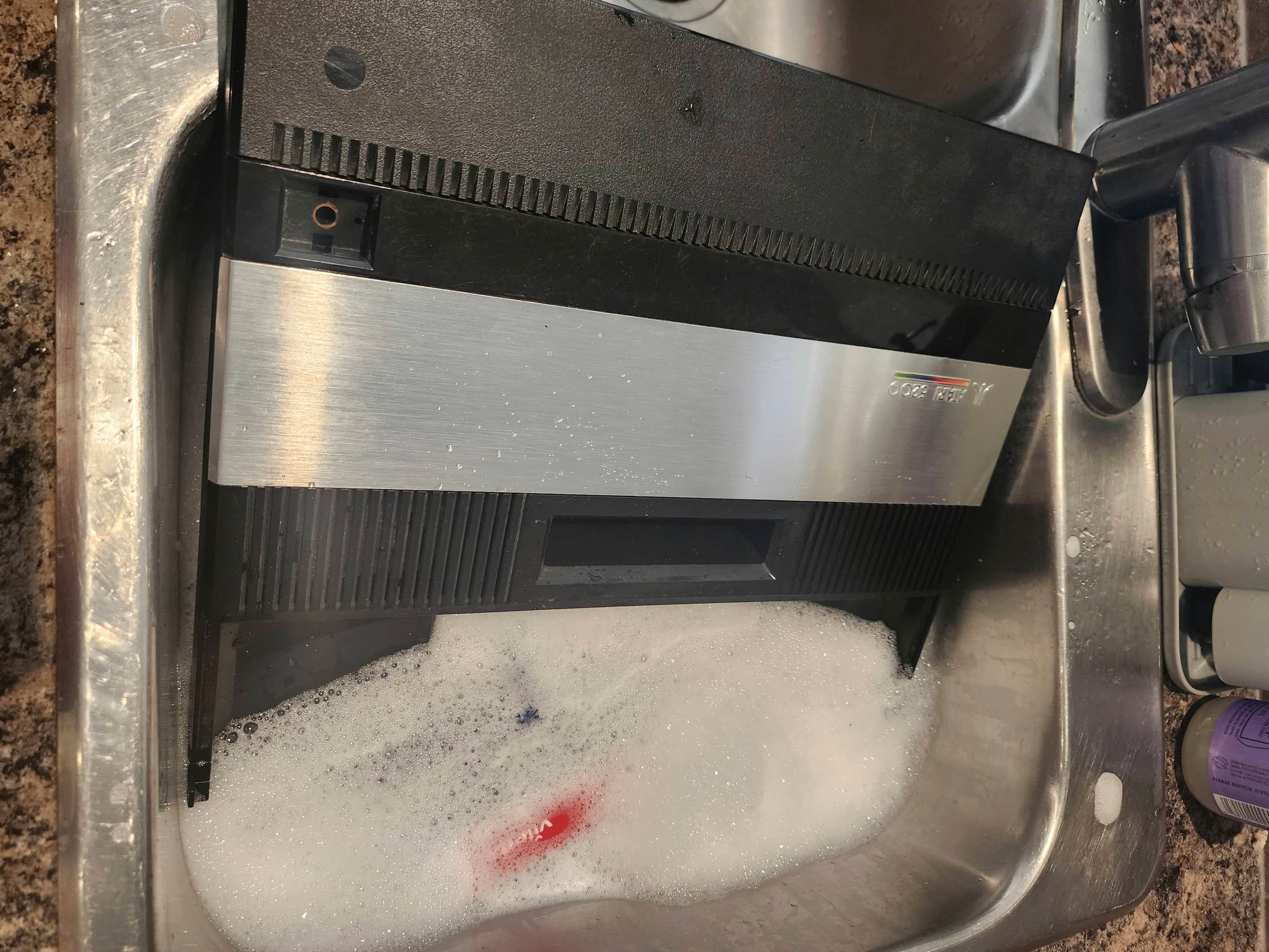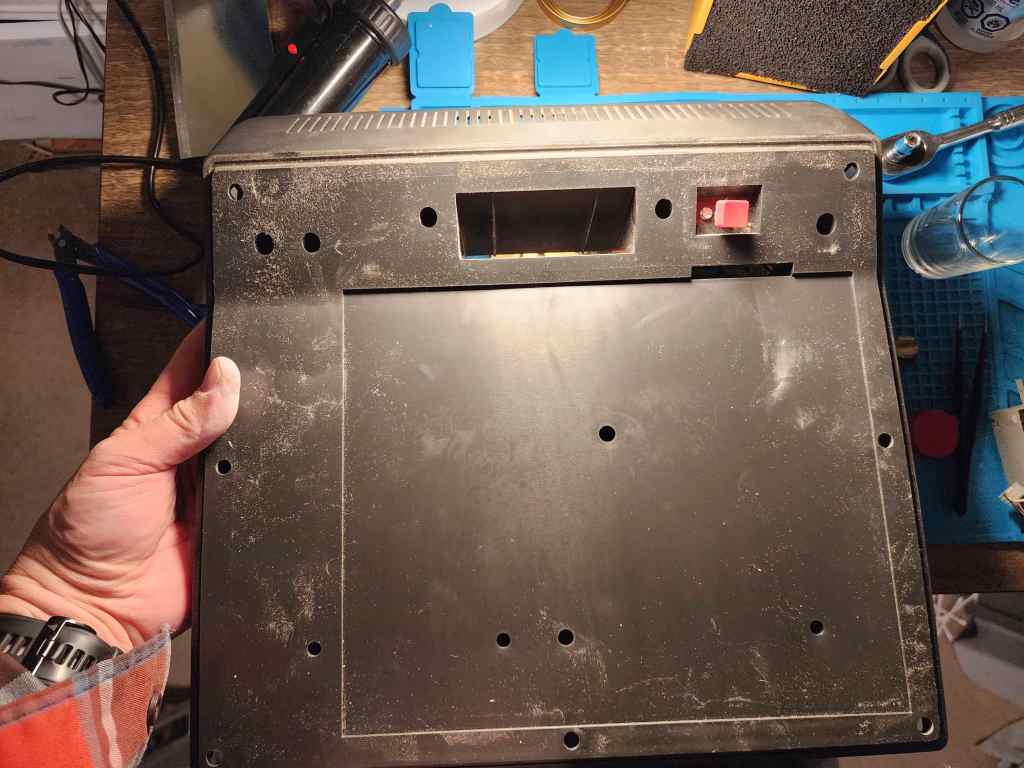 I tried to heat and remove the metal strips and while I partially succeeded, I did not like the end result. 😑 It still looks better than the original top cover, but it is super easy to dent / crease these things. It is however, a fully working system.