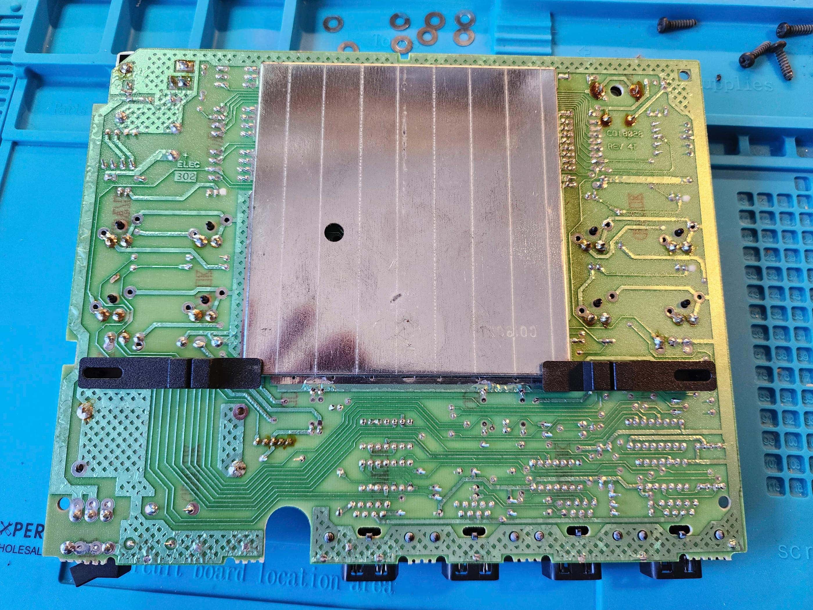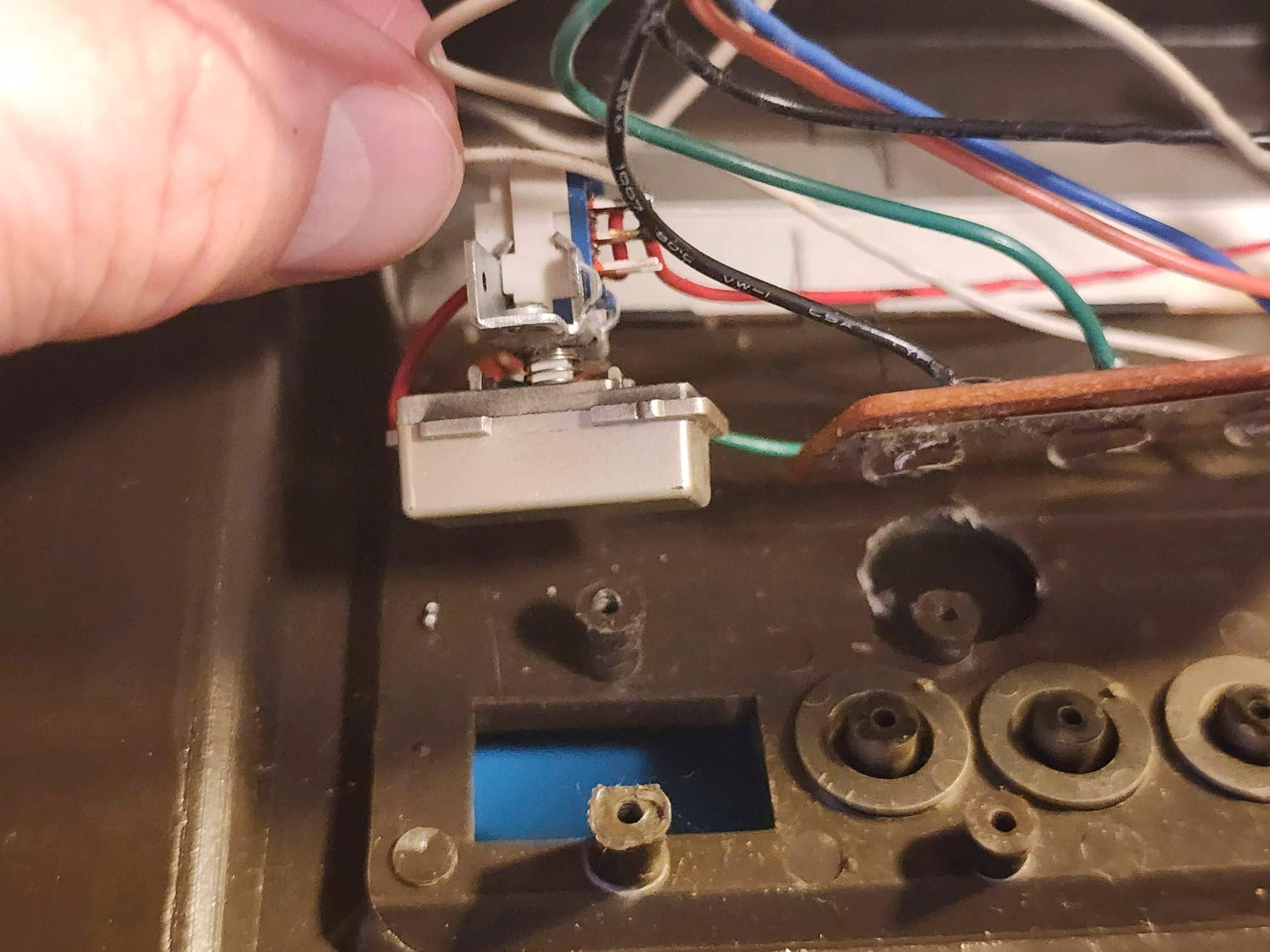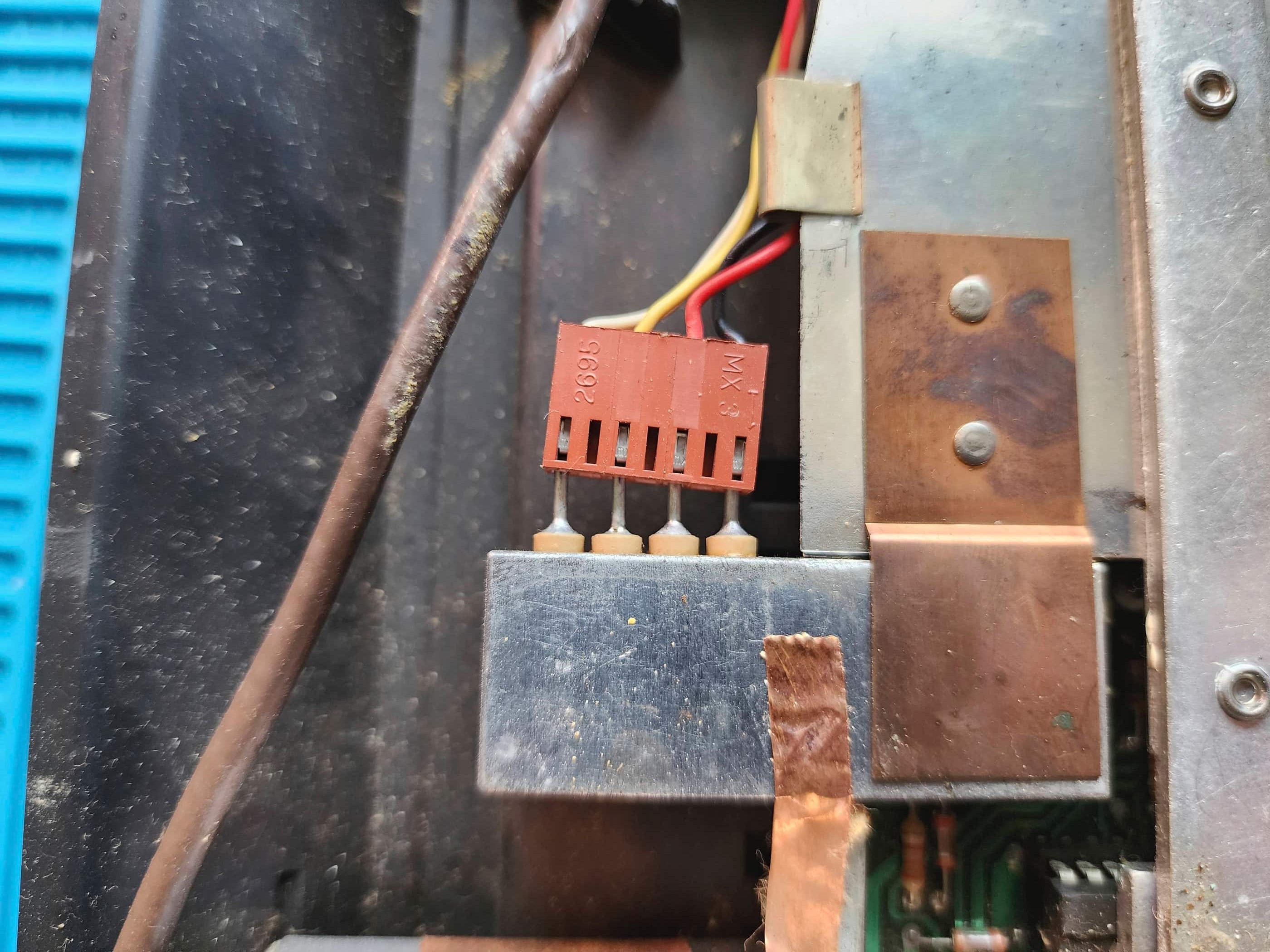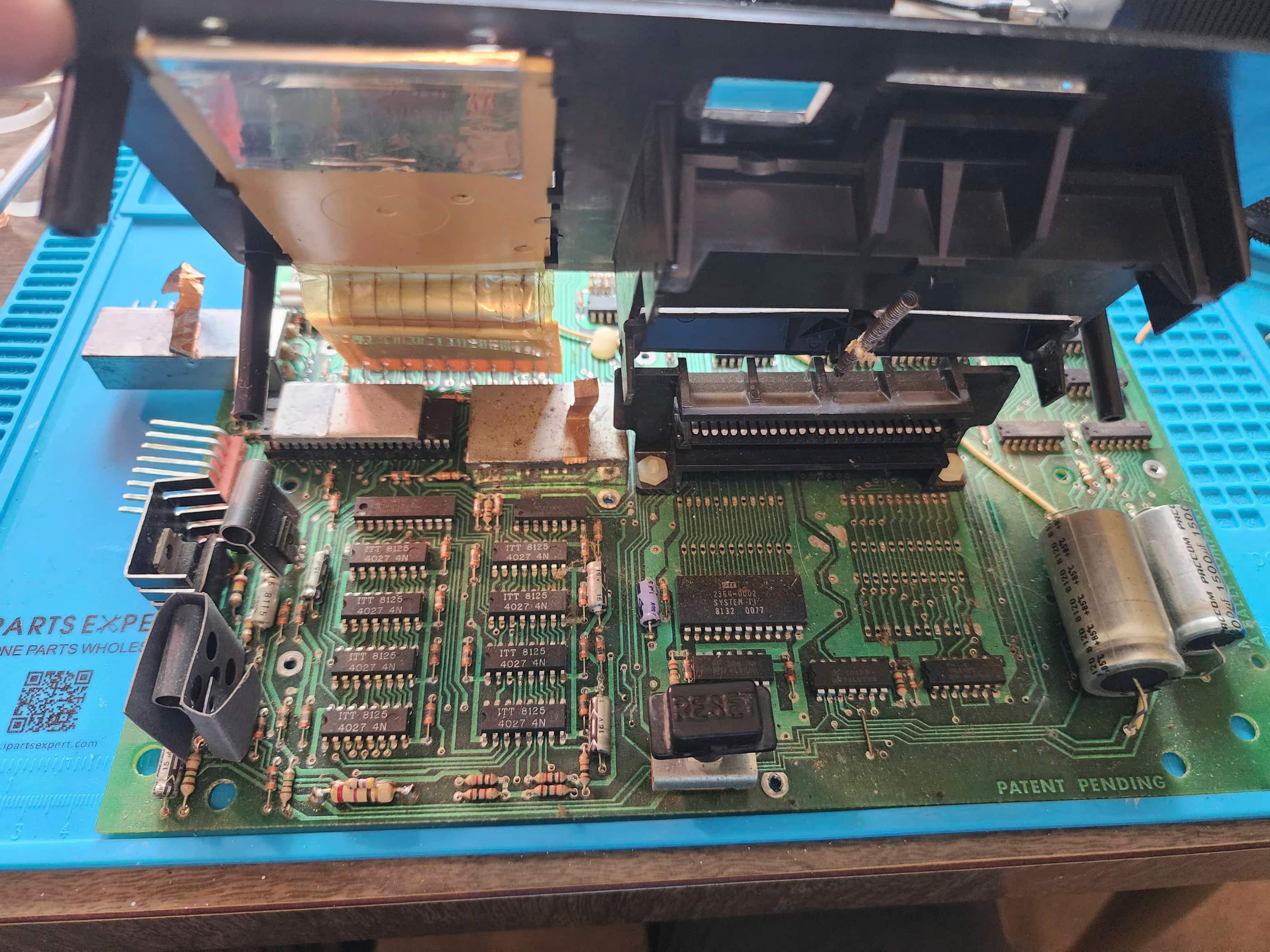 As the machine was working, I decided not to re-cap it, but in the process of putting new thermal grease onto the voltage regulator and heatsinks, I bent the regulator too far forward and wrecked it. Doh! 🤪 This is because the ground pin is set farther back on the board and is not lined up with the in / out pins. Fortunately, I keep a healthy supply of 7805 5v regulators on hand and it only took a couple minutes to replace it. I also disassembled the power switch, cleaned the dirty contacts, applied dielectric grease, and reassembled the switch. Unfortunately, I put the contact strip in the wrong slot and then spent several minutes trying to figure out why the machine didn’t turn on. Doh! 🤪 After I figured it out and fixed the problem, the machine turned on without issue.