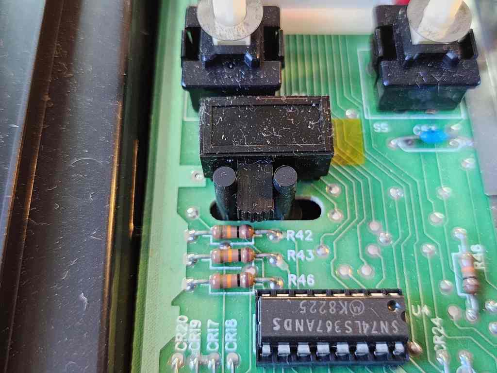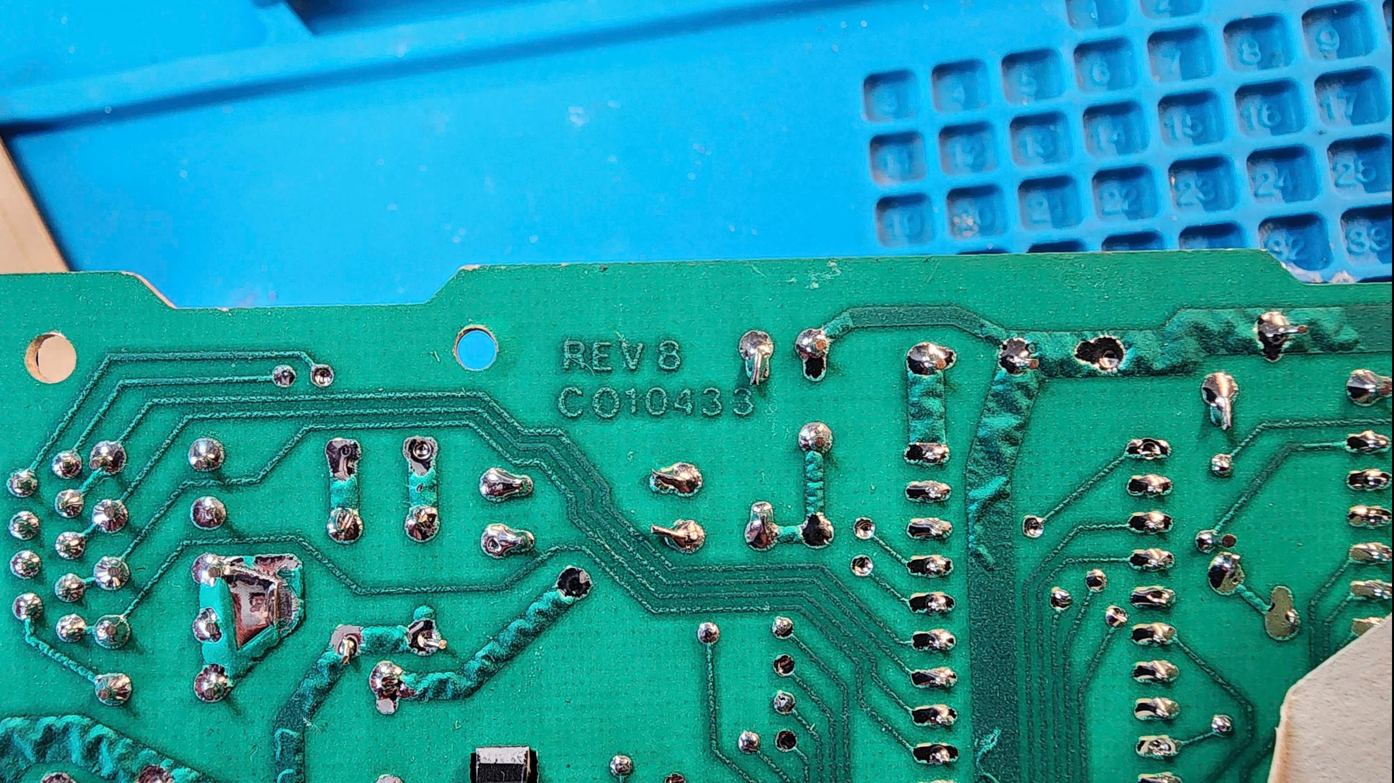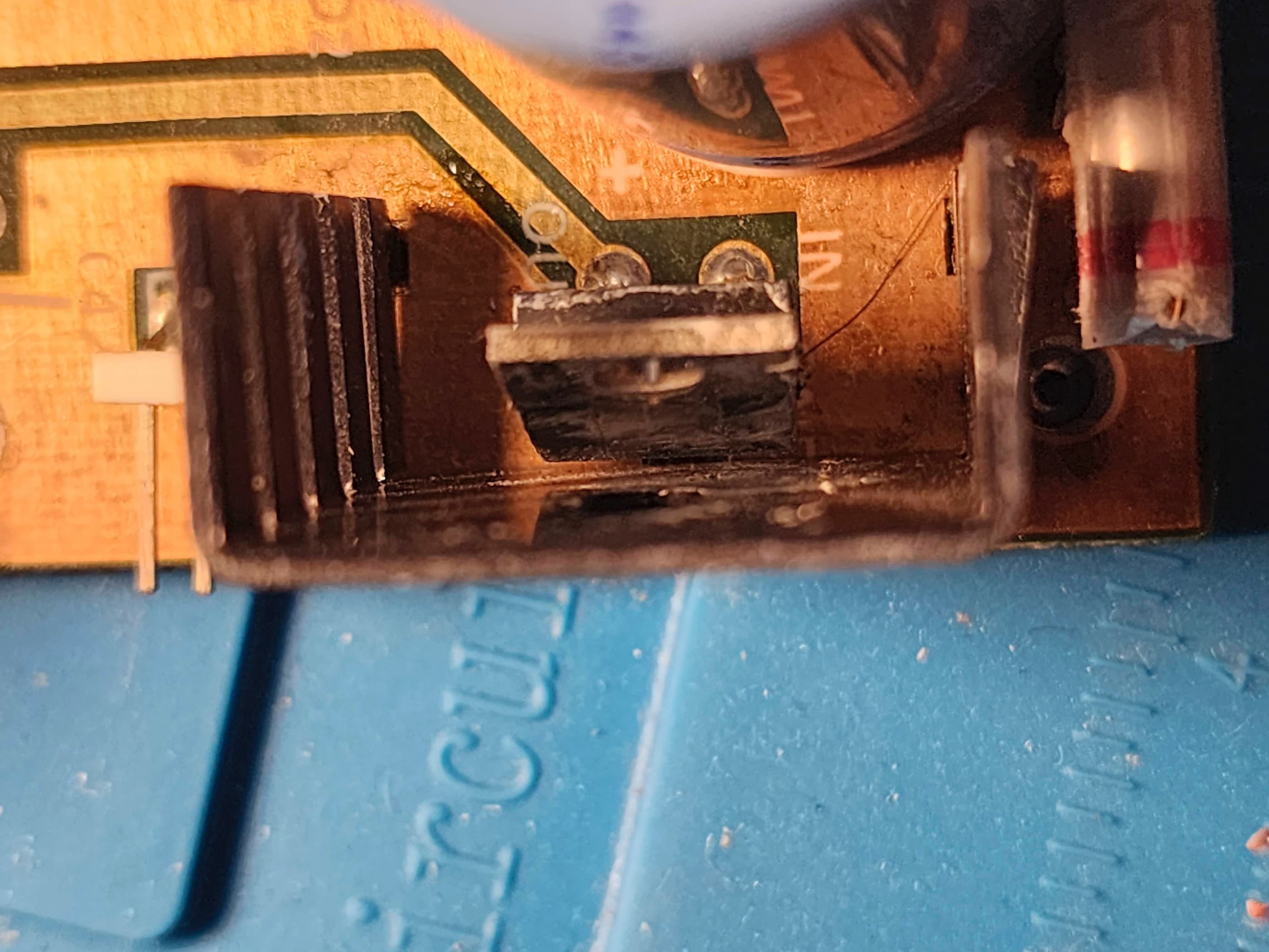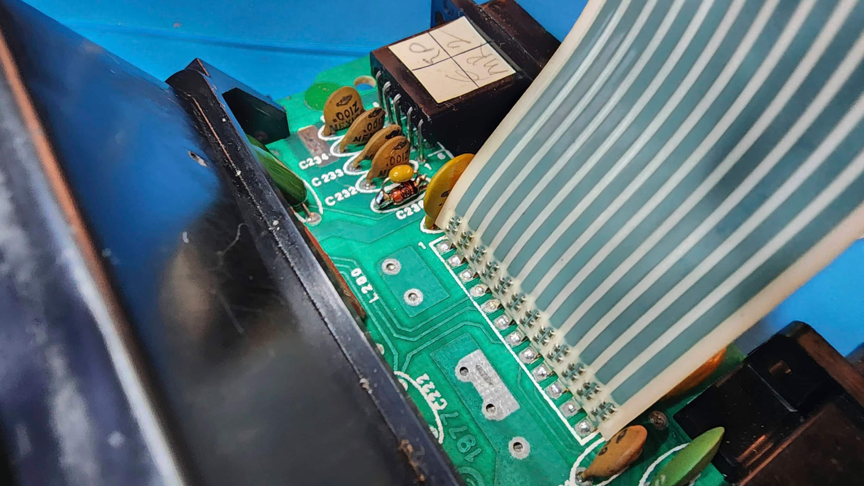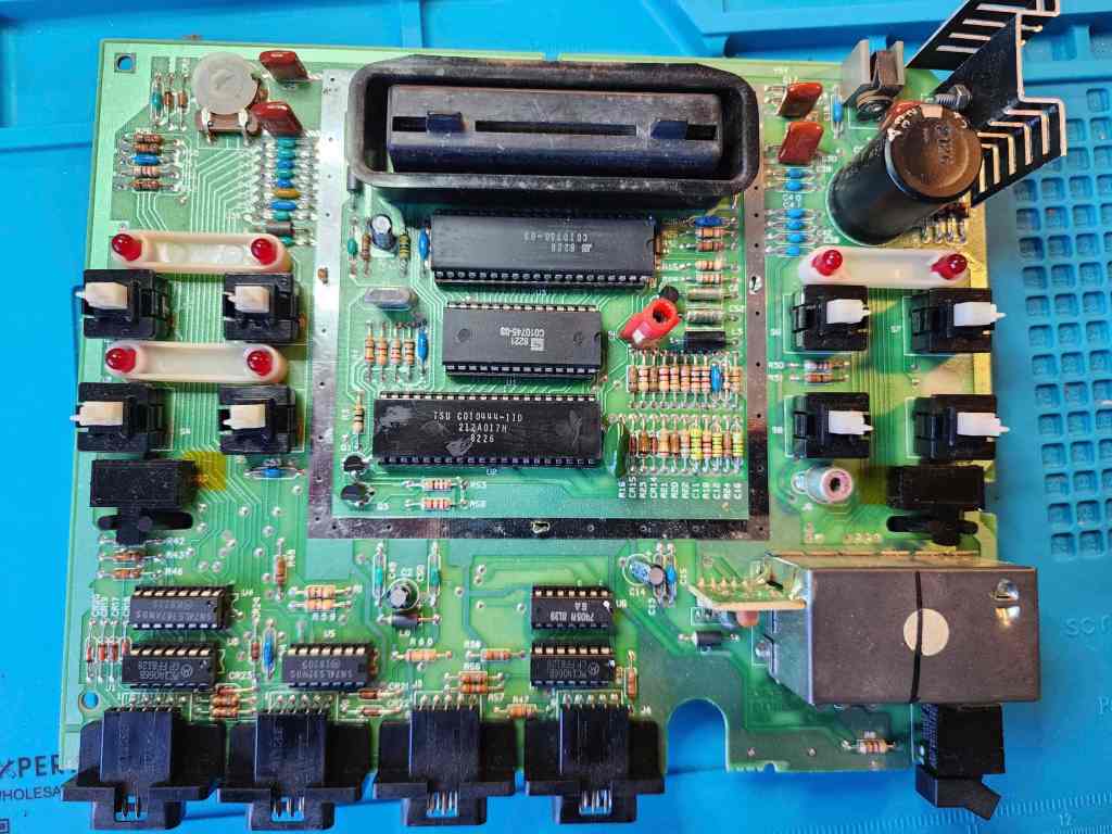 As the machine was working, I decided not to re-cap it, but in the process of putting new thermal grease onto the voltage regulator and heatsinks, I bent the regulator too far forward and wrecked it. Doh! 🤪 This is because the ground pin is set farther back on the board and is not lined up with the in / out pins. Fortunately, I keep a healthy supply of 7805 5v regulators on hand and it only took a couple minutes to replace it. I also disassembled the power switch, cleaned the dirty contacts, applied dielectric grease, and reassembled the switch. Unfortunately, I put the contact strip in the wrong slot and then spent several minutes trying to figure out why the machine didn’t turn on. Doh! 🤪 After I figured it out and fixed the problem, the machine turned on without issue.