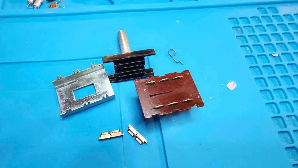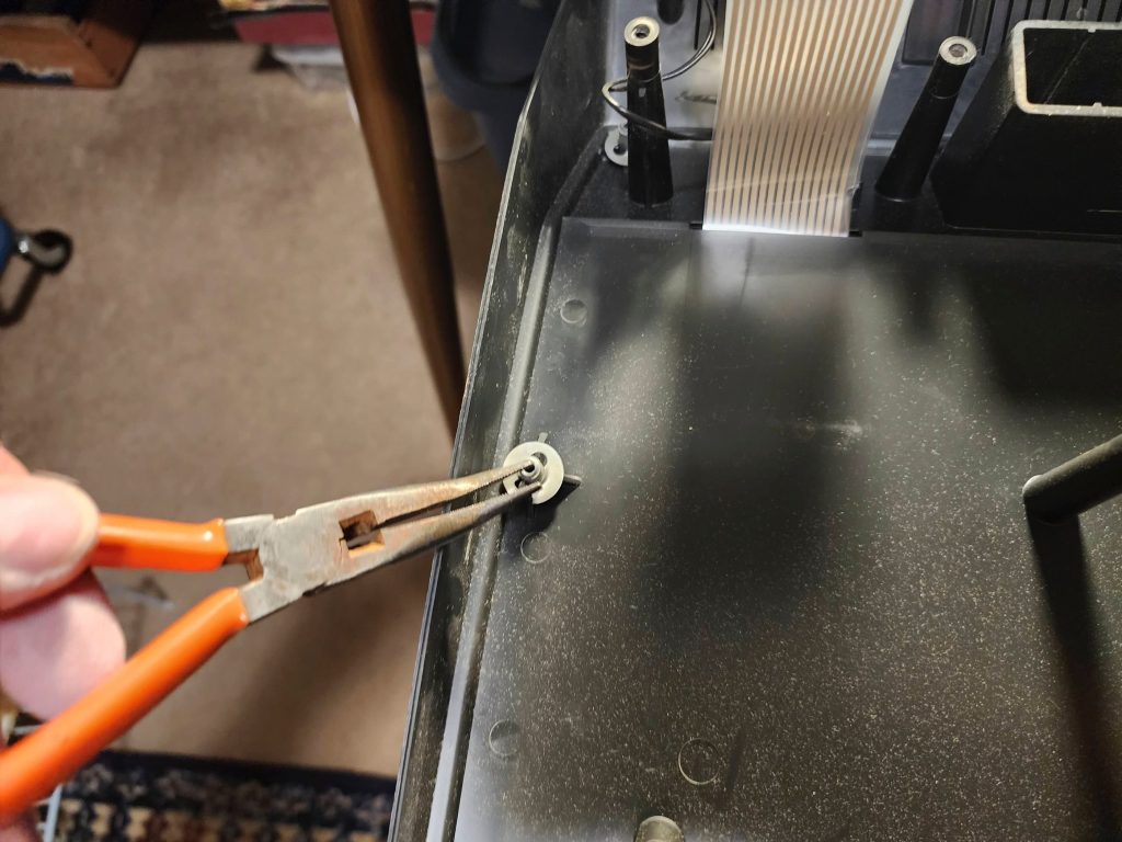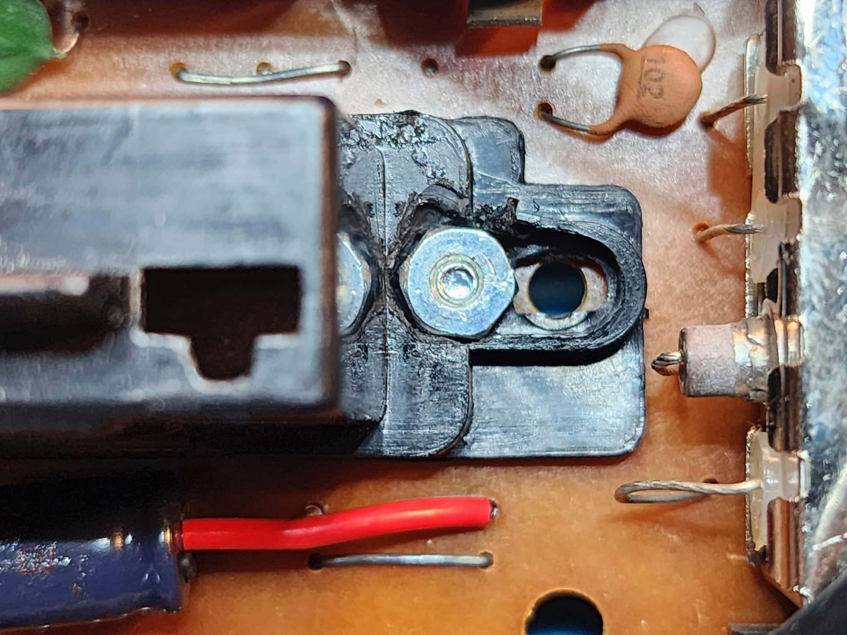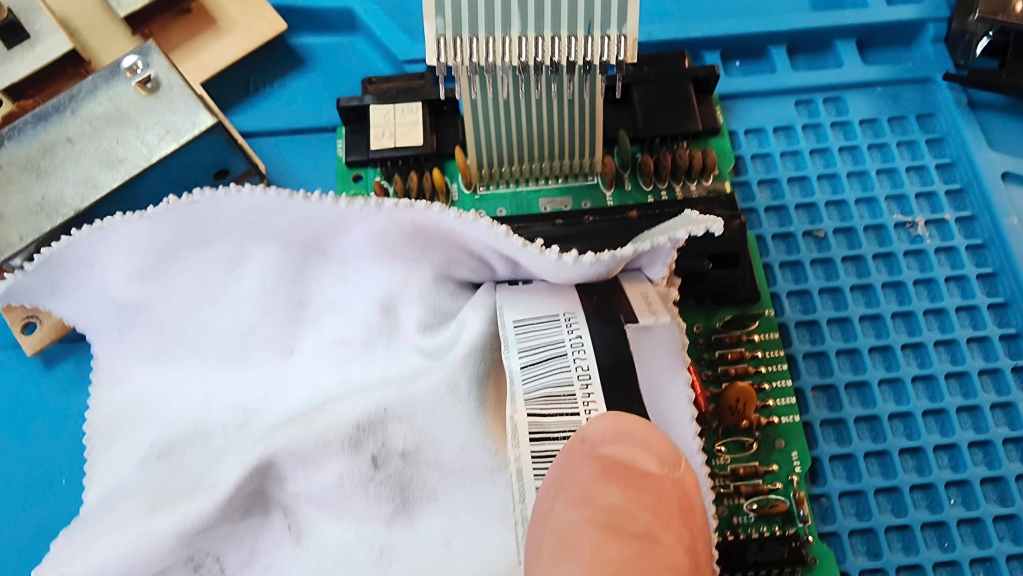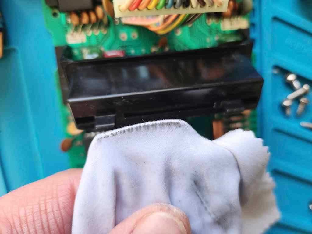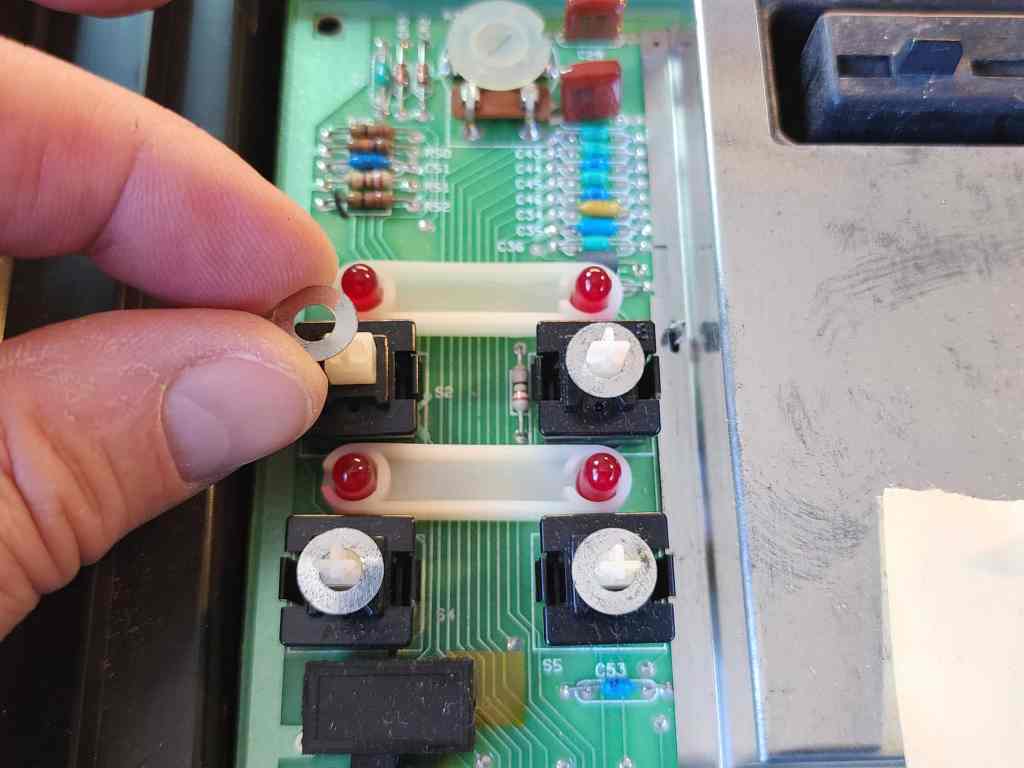 As the machine was working, I decided not to re-cap it, but in the process of putting new thermal grease onto the voltage regulator and heatsinks, I bent the regulator too far forward and wrecked it. Doh! 🤪 This is because the ground pin is set farther back on the board and is not lined up with the in / out pins. Fortunately, I keep a healthy supply of 7805 5v regulators on hand and it only took a couple minutes to replace it. I also disassembled the power switch, cleaned the dirty contacts, applied dielectric grease, and reassembled the switch. Unfortunately, I put the contact strip in the wrong slot and then spent several minutes trying to figure out why the machine didn’t turn on. Doh! 🤪 After I figured it out and fixed the problem, the machine turned on without issue.