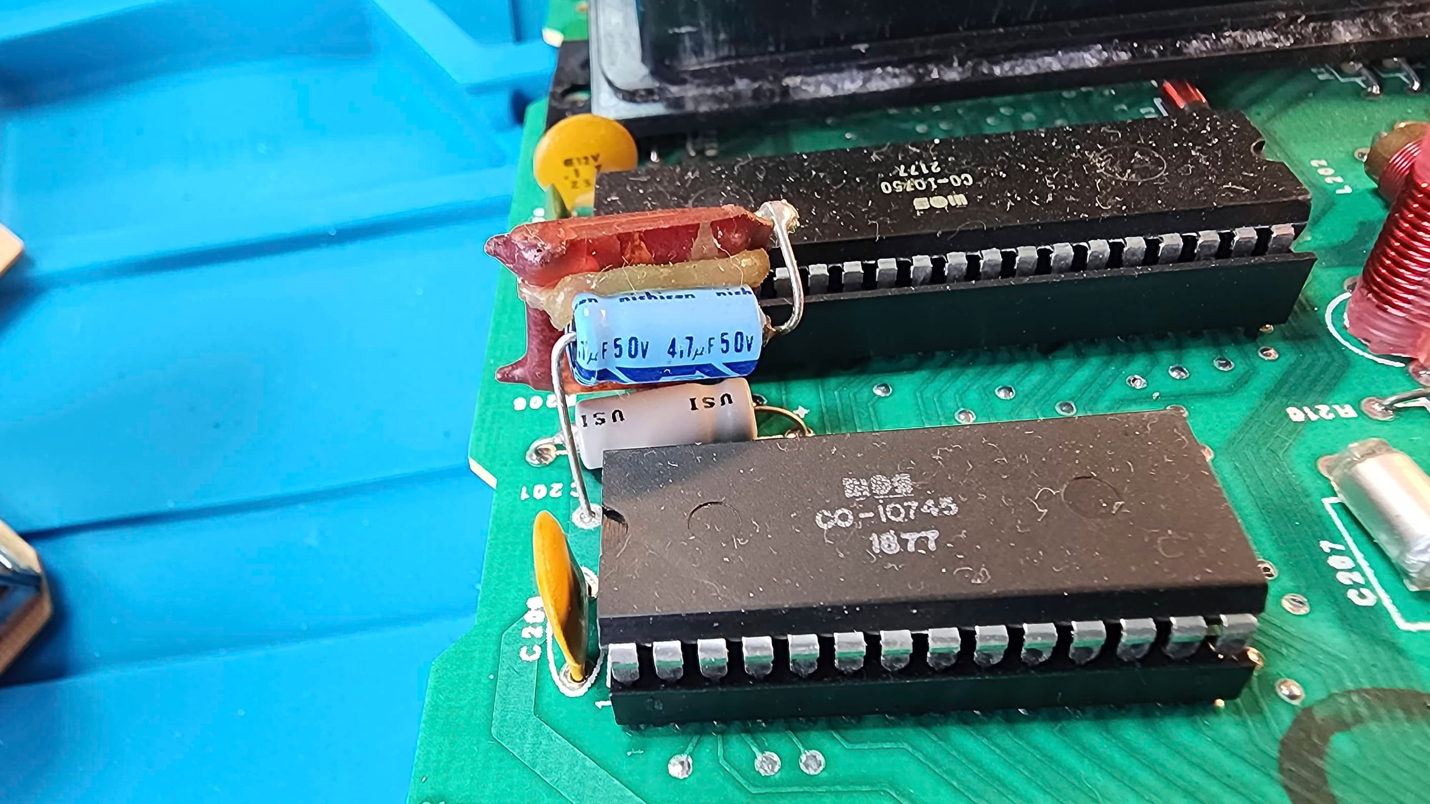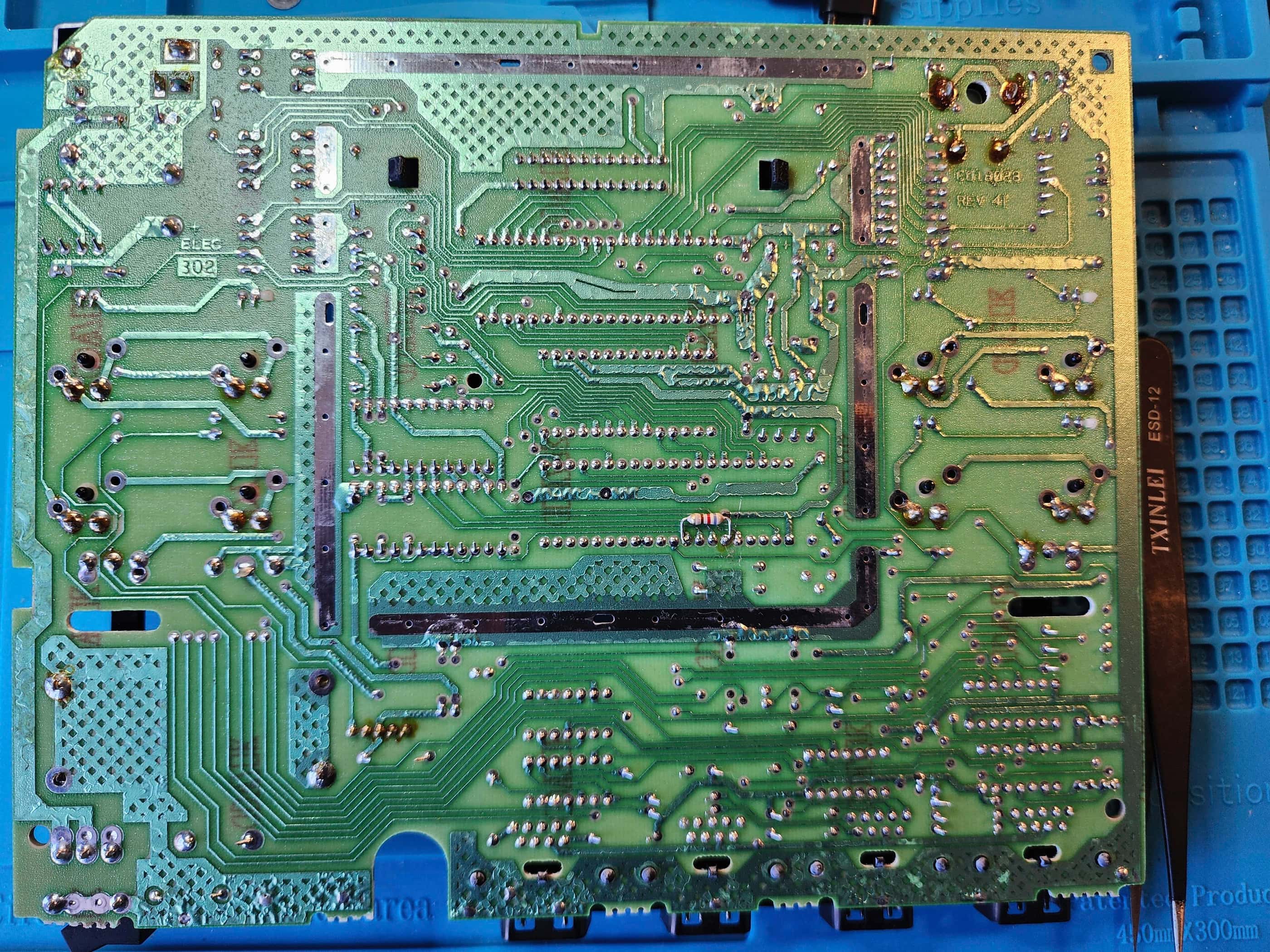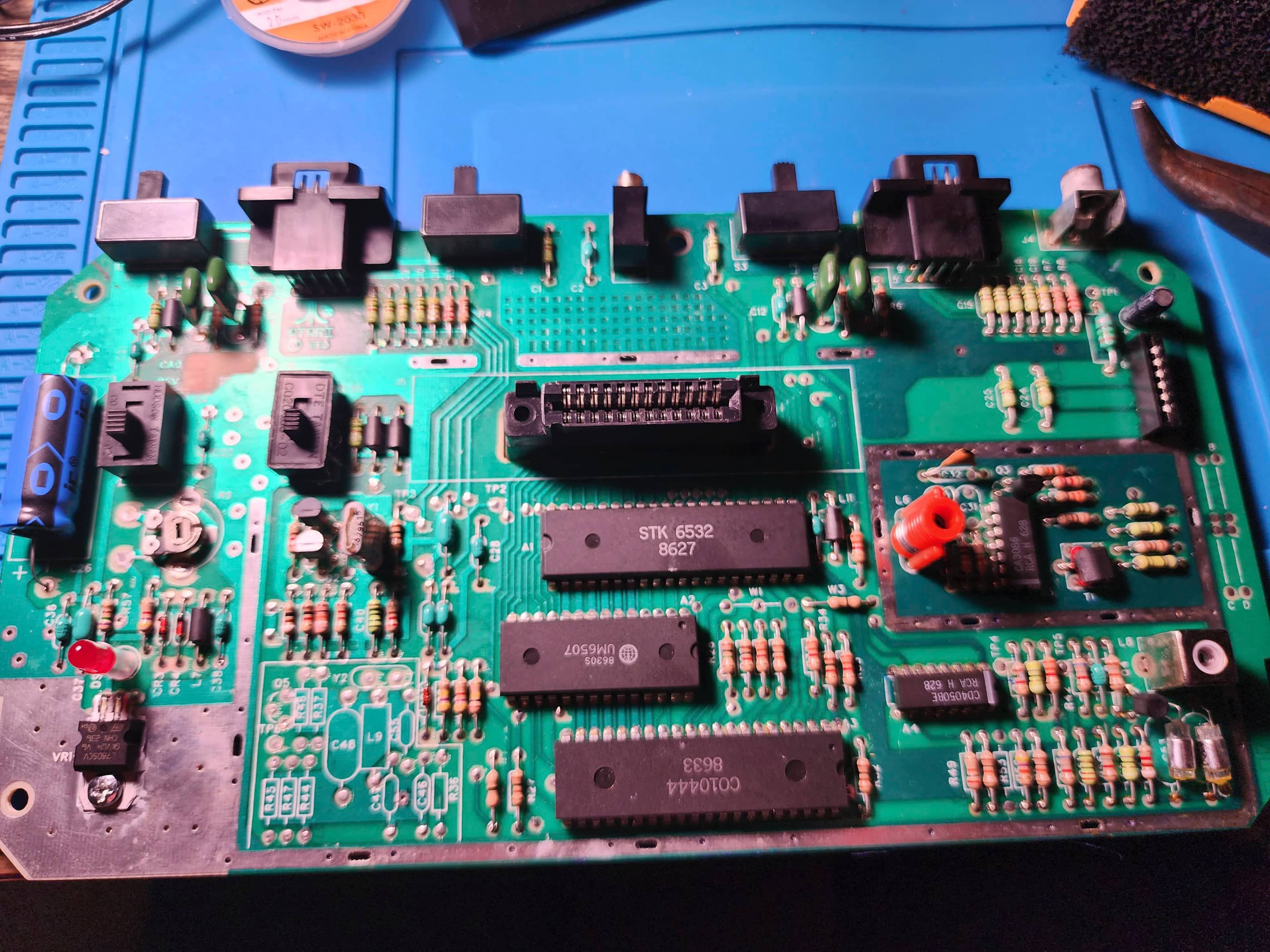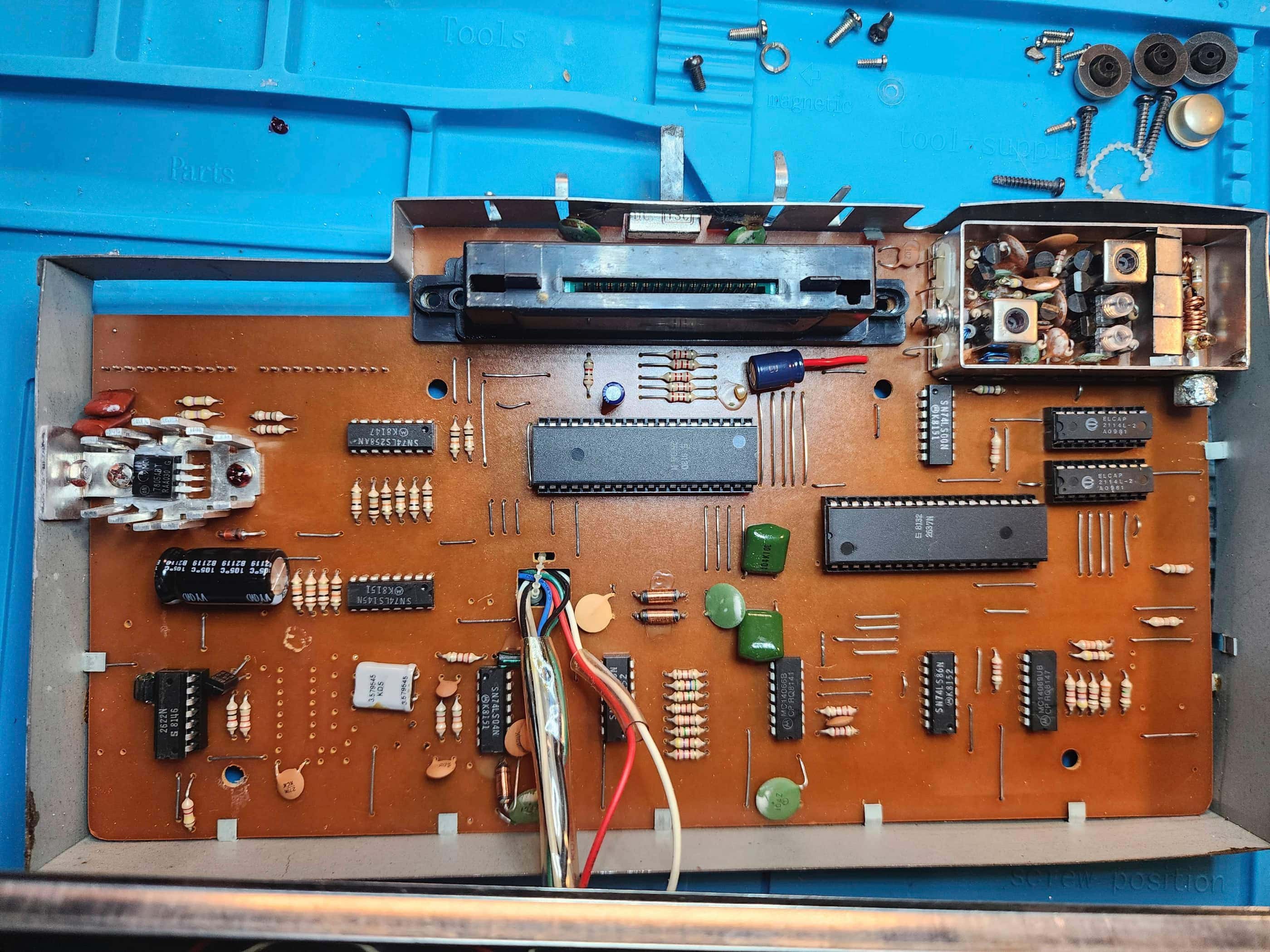 Once I had taken everything apart, I set to work on re-capping the entire unit along with: replacing the 7805 voltage regulator; performing the recommended mylar capacitor replacement on the upper board; the recommended anti-static Zener diode mod on C236 and C237 on the main board; and finally, the recommended polystyrene audio capacitor replacements also on the main board.