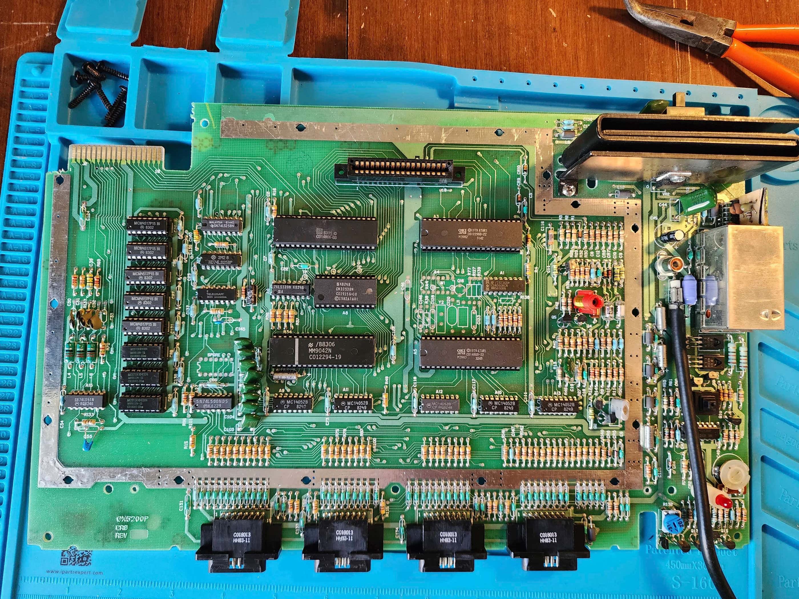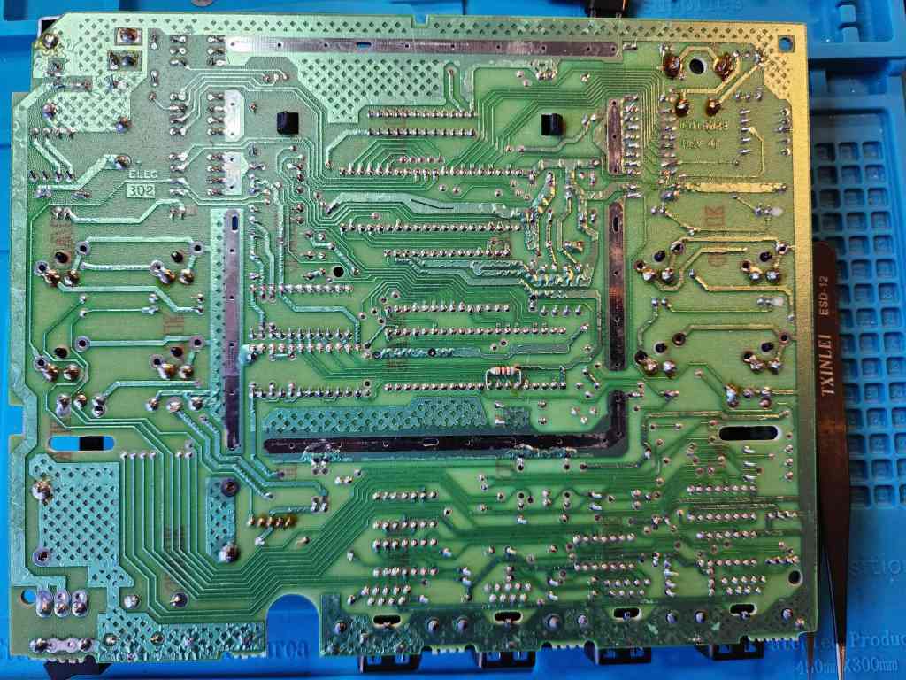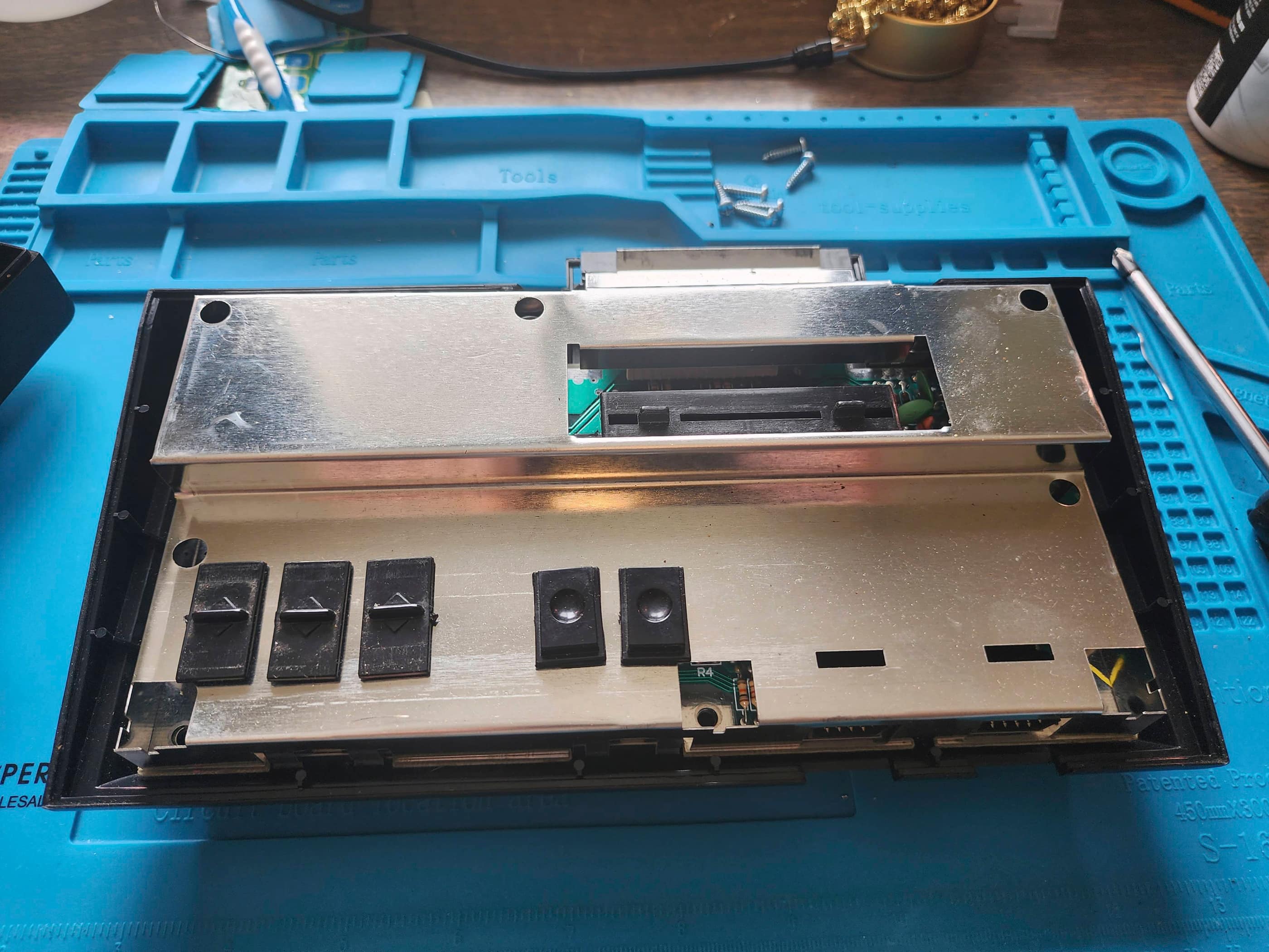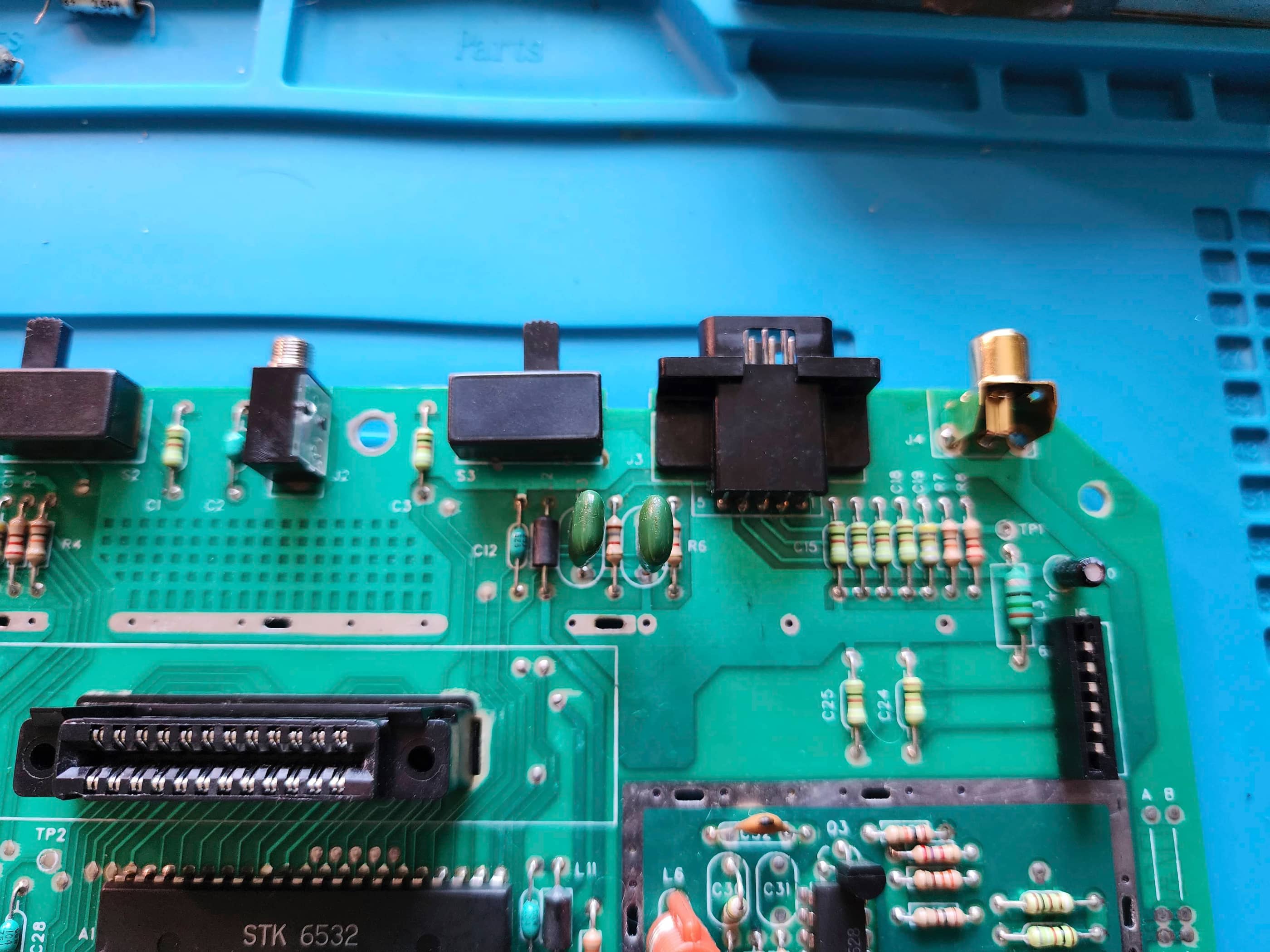 Once I had taken everything apart, I set to work on re-capping the entire unit along with: replacing the 7805 voltage regulator; performing the recommended mylar capacitor replacement on the upper board; the recommended anti-static Zener diode mod on C236 and C237 on the main board; and finally, the recommended polystyrene audio capacitor replacements also on the main board.