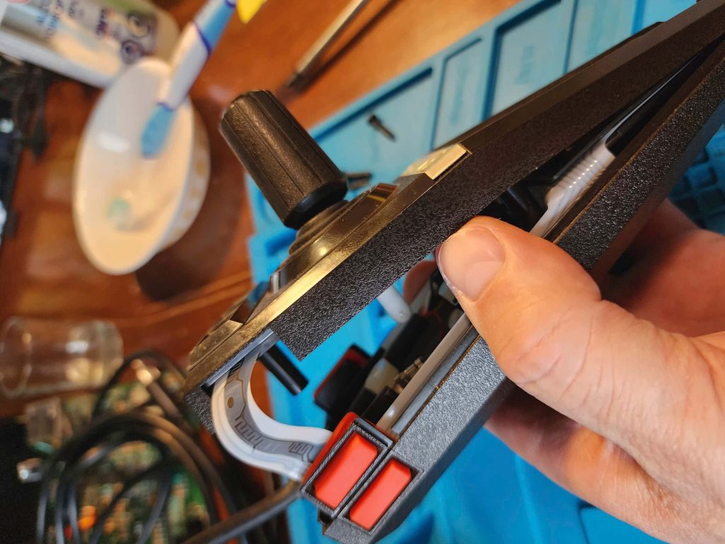 After a detailed cleaning I moved on to try and fix the controllers. When I opened them up, I was shocked at how dirty the flex circuits were. I spent a long time trying to clean them, hoping that this was the issue, but the dark lines I could see under the film made me conclude that there were continuity issues that couldn’t be fixed. My multimeter then confirmed this to be true. I reassembled the controllers but could not get them to work at all. This meant my only other option was to find replacement parts which meant waiting until MO2 #2 arrived. Once on hand, I swapped the controllers over and tried out some games. The left controller now worked without issue; however, the right controller was unresponsive and even after reseating it onto the board, it still did not work. To determine if it was a controller or board issue, I swapped the controllers to opposite sides and this immediately fixed the issue. To me, this was weird because I simply put the left controller from the MO2 to the left port on the MO1 and likewise for the right. However, swapping them fixed the problem and to finalize their placement, I adjusted the stress release slack on the cord for each controller. I reassembled the unit and gave it a final test with a variety of games. It passed with flying colours. I now have a fully functional MO2.