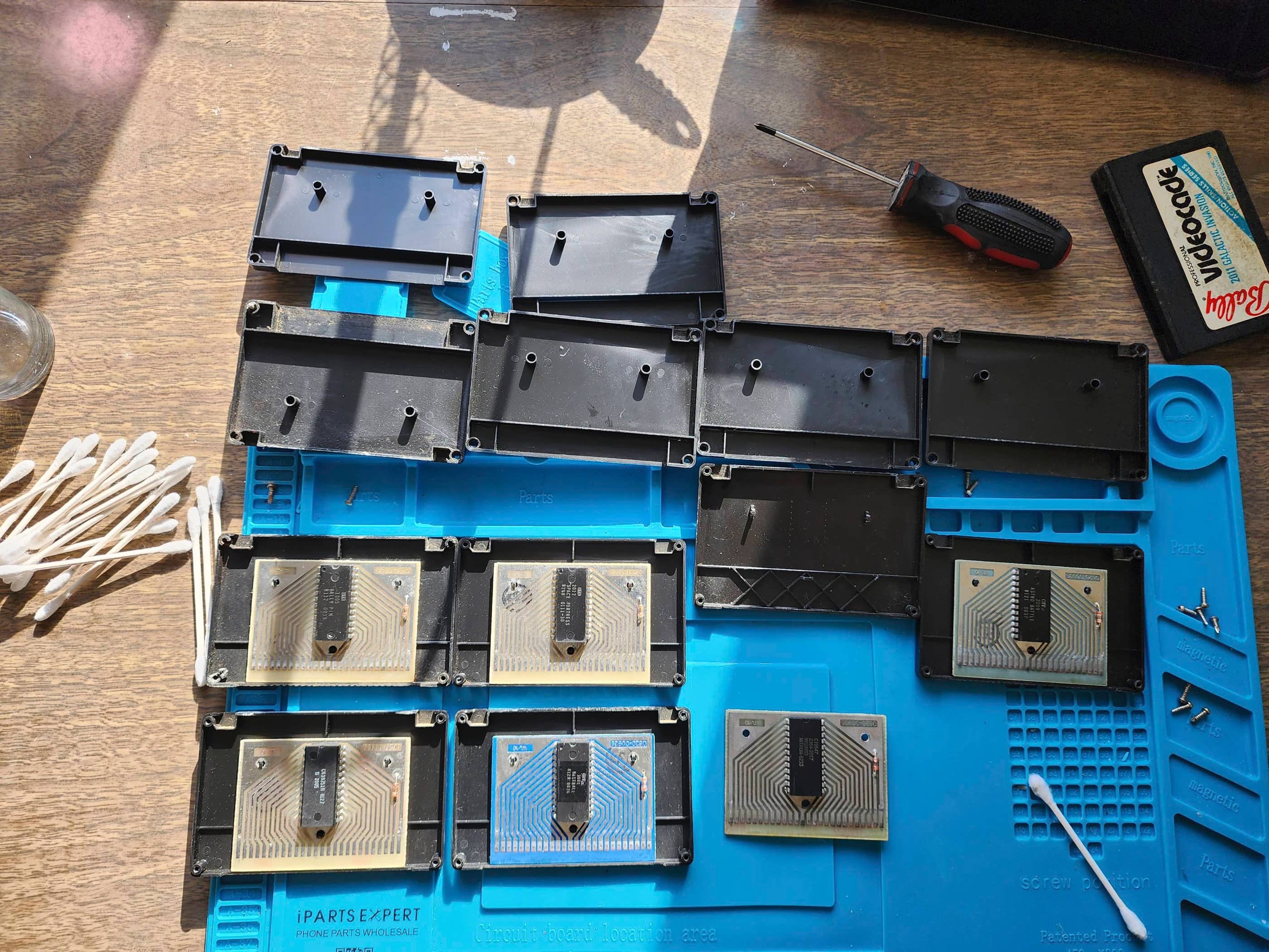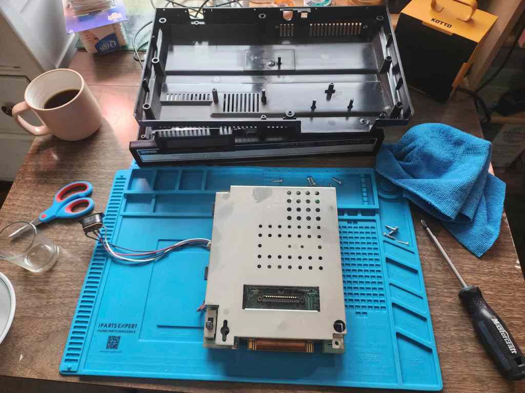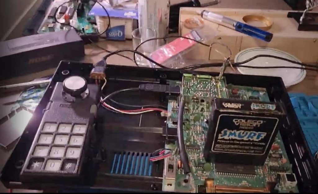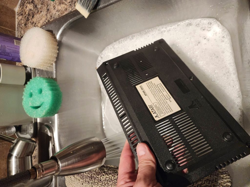 Next, I undertook my detailed cleaning regiment plus I added heatsinks to all three of the custom chips; however, I could not remove the ingot from the custom data chip, so I ended up putting the heatsink on top of the ingot. Not ideal but acceptable – and it still fit under the ribbon cable. I also rebuilt three of the non-working controllers using a pair of non-working controllers I found online. I disassembled, cleaned, and reassembled all of the cartridges to see if that helped. It did for one of the games. When I reassembled the entire system, I did not include the RF shielding to promote better airflow. As the metal keypad had come unglued, I glued that back onto the case. The system now works wonderfully and I’m consistently blown away by the depth and quality of the sound compared to its peers. The innovative controllers are also surprisingly responsive. 😀