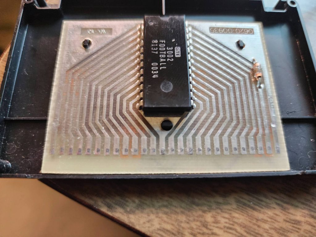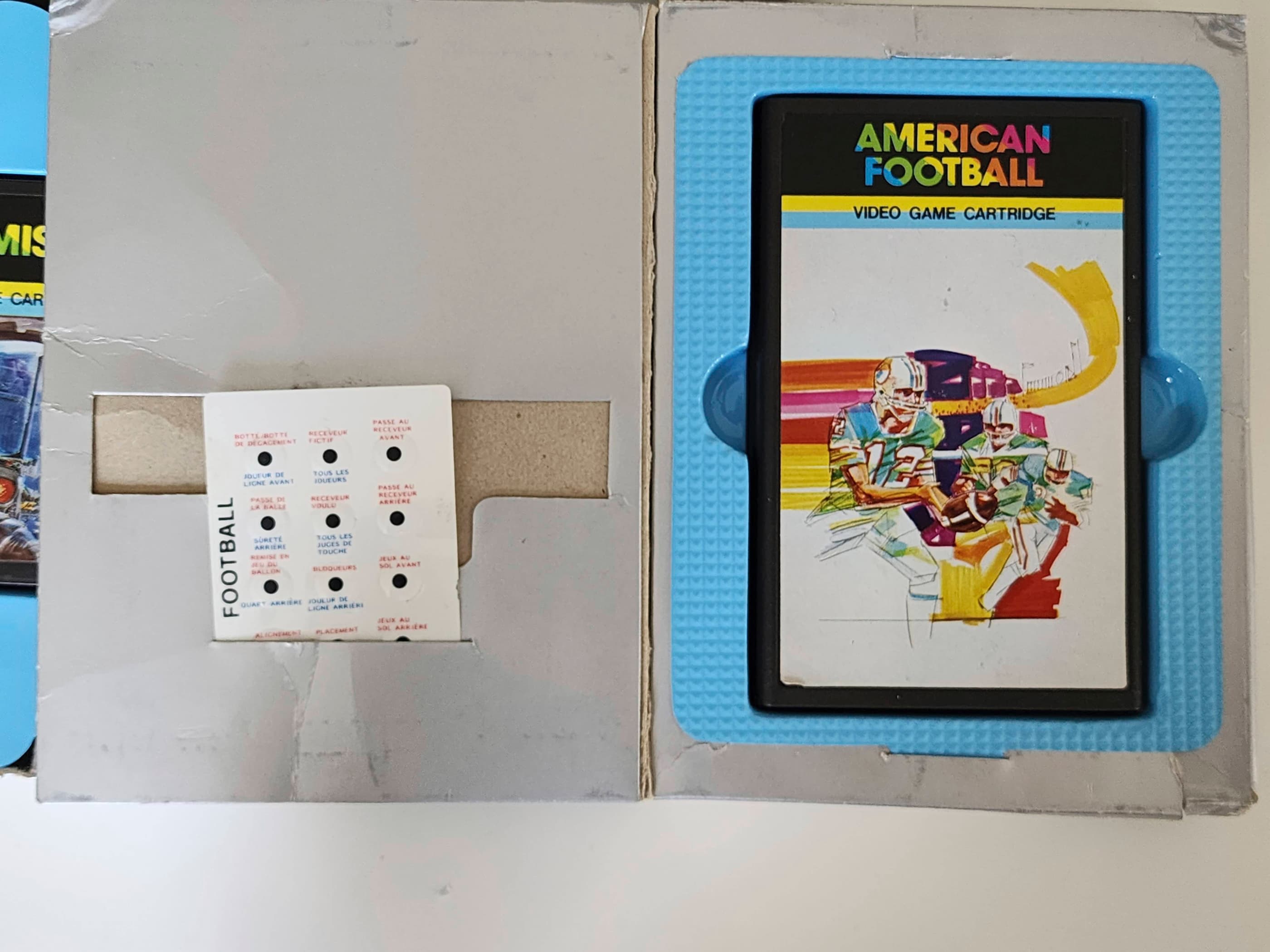 Since the unit was a bit of a pain to open, I figured I’d replace the 7805 5V regulator and the three capacitors so that I wouldn’t have to in the future. Once this was done, I tested the system and ran a few more cartridges through it. That’s when I discovered two of my six cartridges did not work – football or more specifically, ‘Americain Football’ 😂 (note the spelling mistake from the cover) and Baseball. Oh well, the others worked so that’s good.
