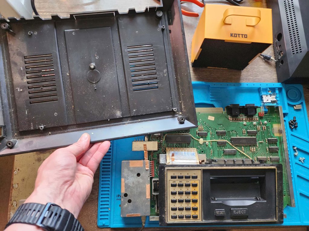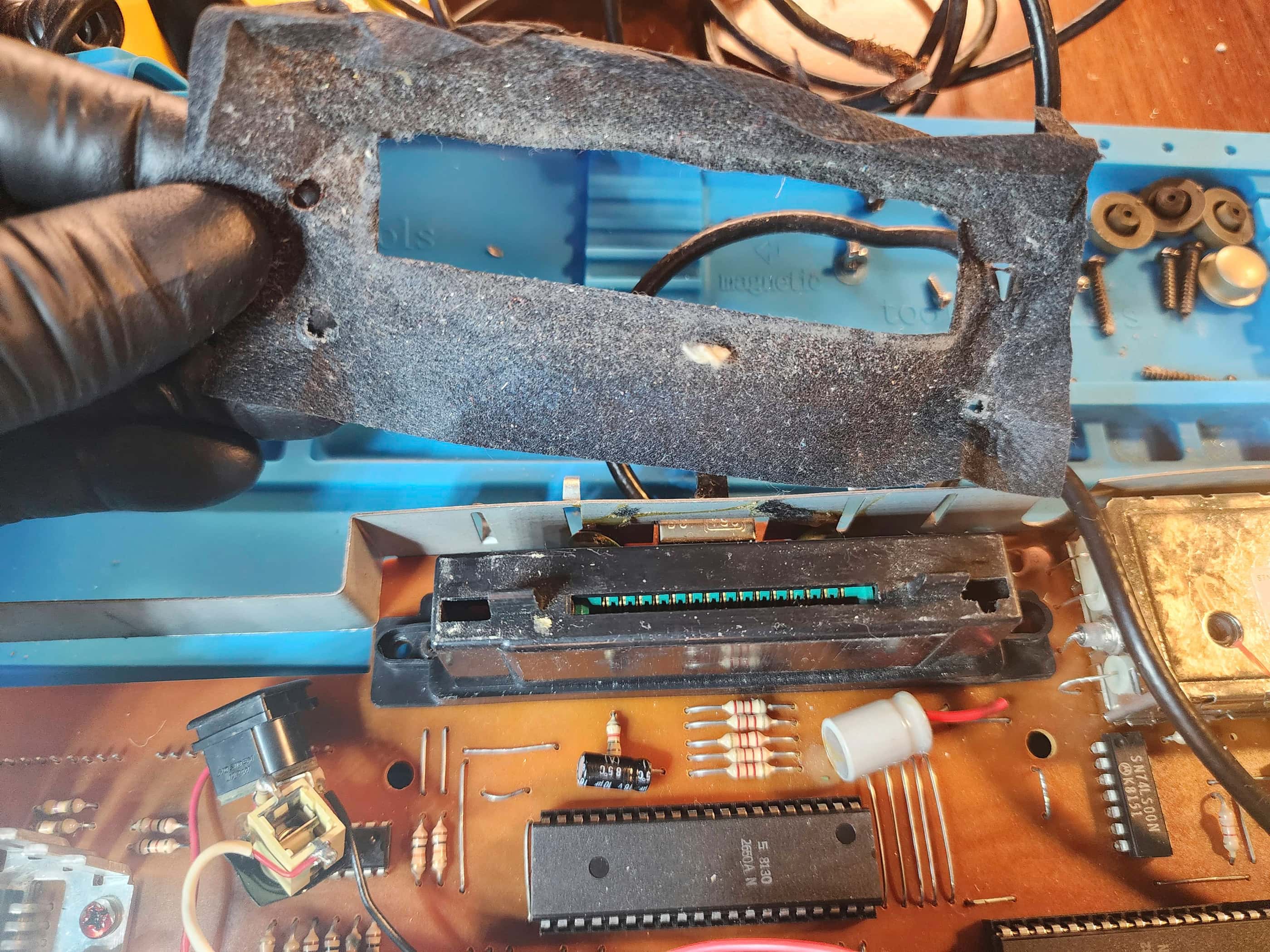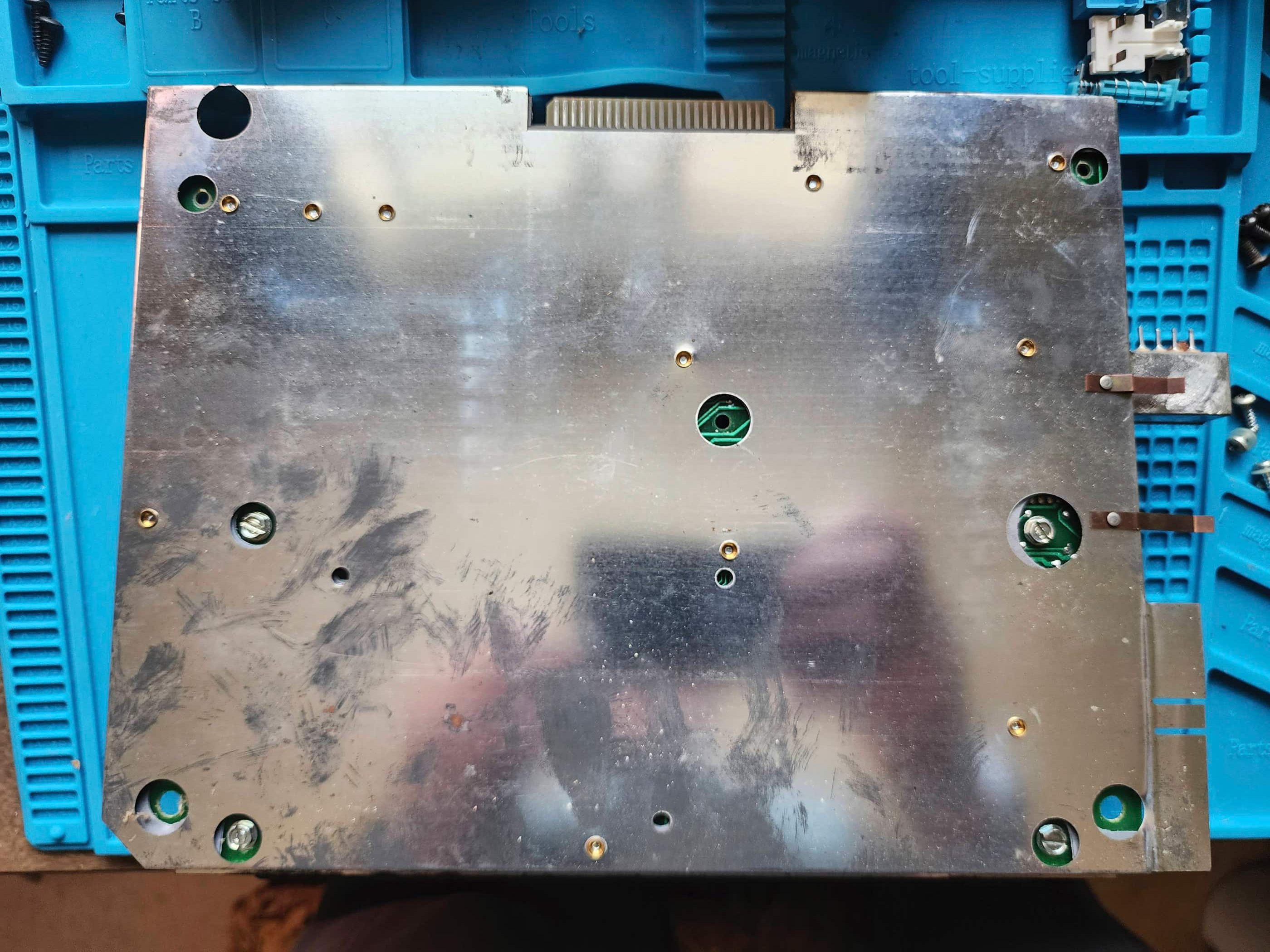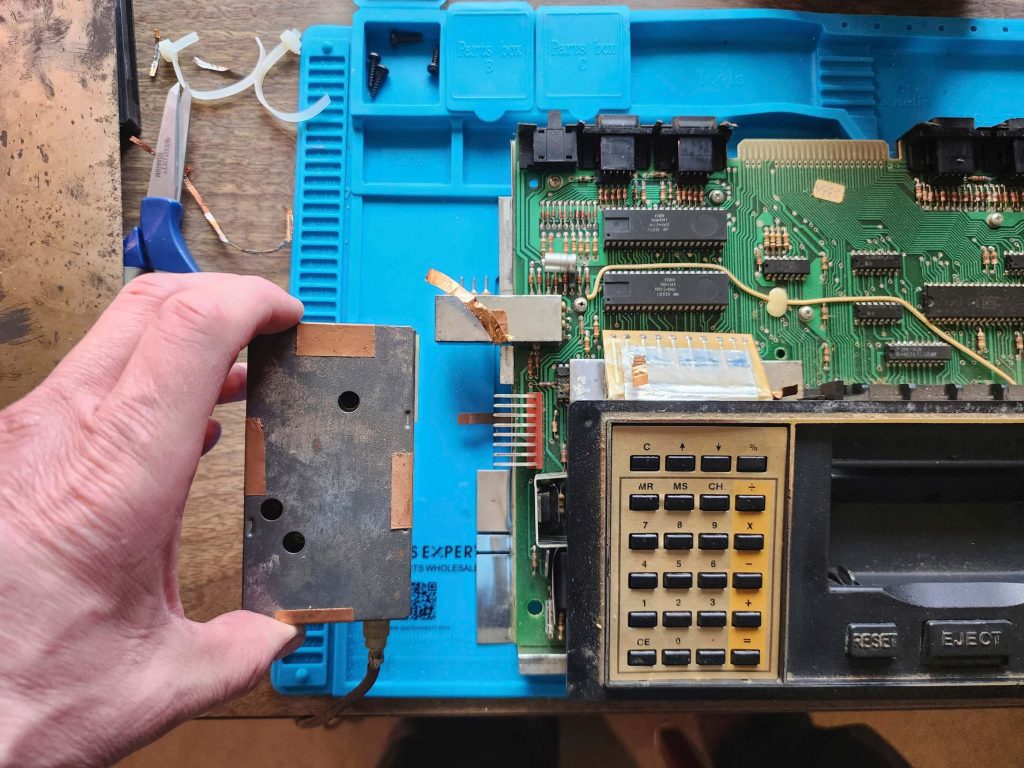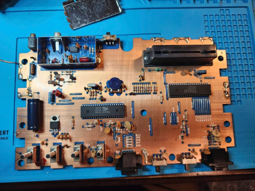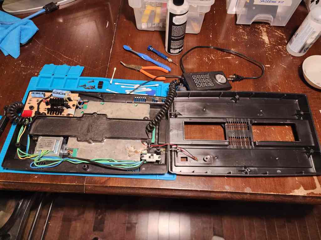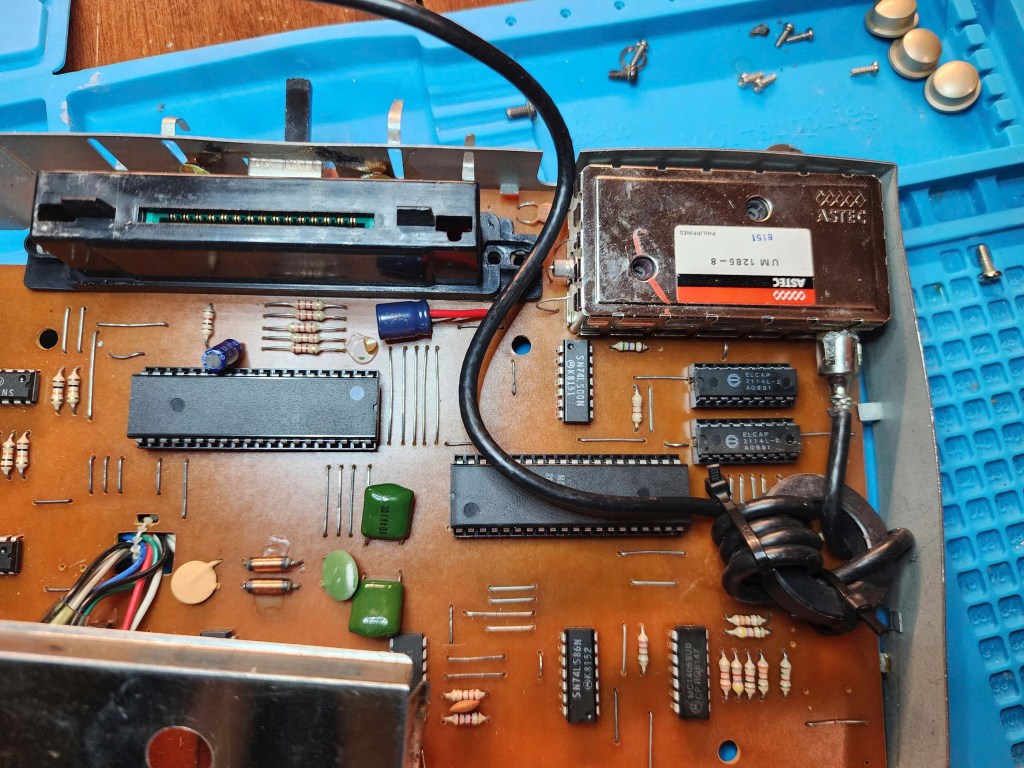 Project Details: I was super stoked to find this rare beauty! I knew from the seller that it would be DOA, but I was keen to see if it was a simple problem or something more complicated. These systems had a history of overheating due to design, and sometimes the custom chips would be wrecked by excessive heat. Moreover, the power adapter was proprietary and outputted two separate AC voltages (11.5 & 7.5) and if that was faulty, then finding a replacement would be tricky. However, before I could do anything to the unit, I had to fumigate it because it reeked of cigarette smoke (it’s a 70s console after all 😂). After a few weeks of sitting with a pan of baking soda while sealed inside a garbage bag, the Astrocade finally lost its acrid smell and I could get to work. Right away, I noticed the following: 1) the RF cable had been cut in half and then spliced with different cable; 2) when I opened the cover, I saw that the connector for the power adapter was not seated properly on the input to the rectifier; and 3) the metal ingot on the custom data chip had separated from the RF shielding, which it was supposed to be using as a giant heatsink. The good news, was that I could tell from the solder joints on the shielding, that the unit had probably never been opened before, so I got to work on desoldering the shielding.