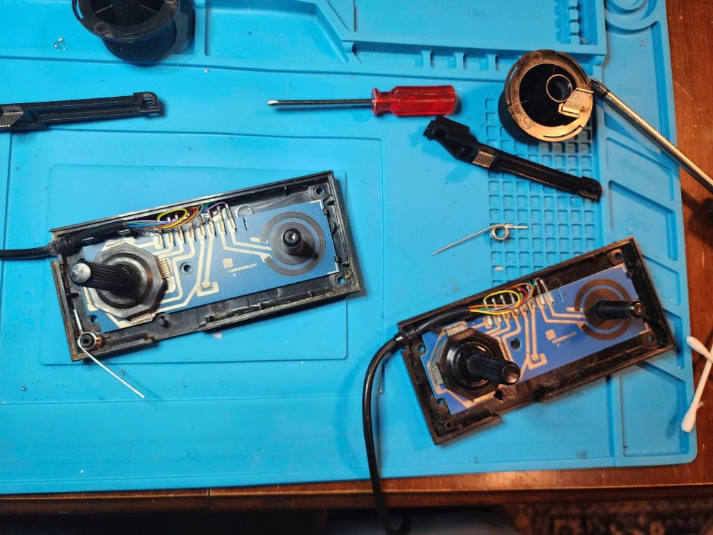 Next, I turned my attention to the controllers. As I’d never seen these controllers before, I was curious what was inside. Surprisingly, they were relatively clean and it didn’t take me long to clean the contacts, boards, and cases. I did not however, disassemble and clean the potentiometers for the paddles. As everything worked perfectly, I let sleeping dogs lie and reassembled both controllers.