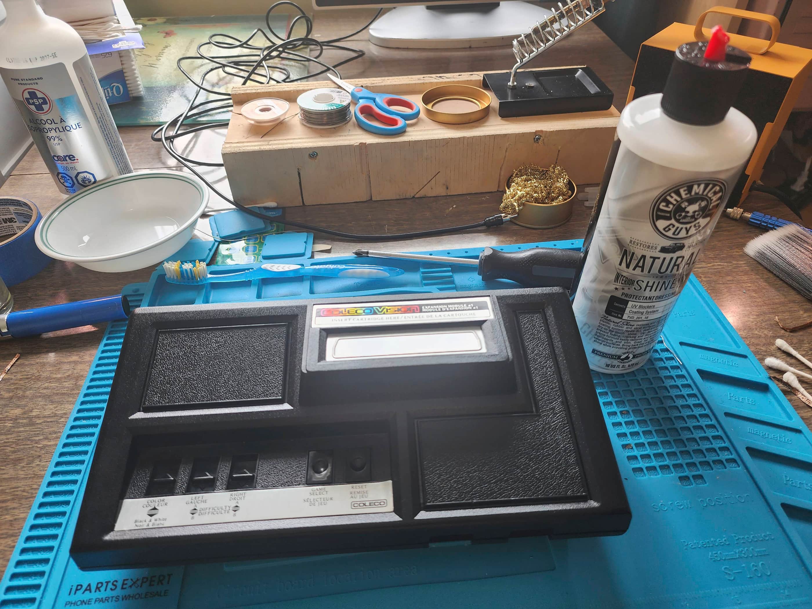 Parts & Products Used: 99% isopropyl alcohol; Chemical Guys Natural Shine; dielectric grease; replacement Colecovision power adapter; 22 gauge wire